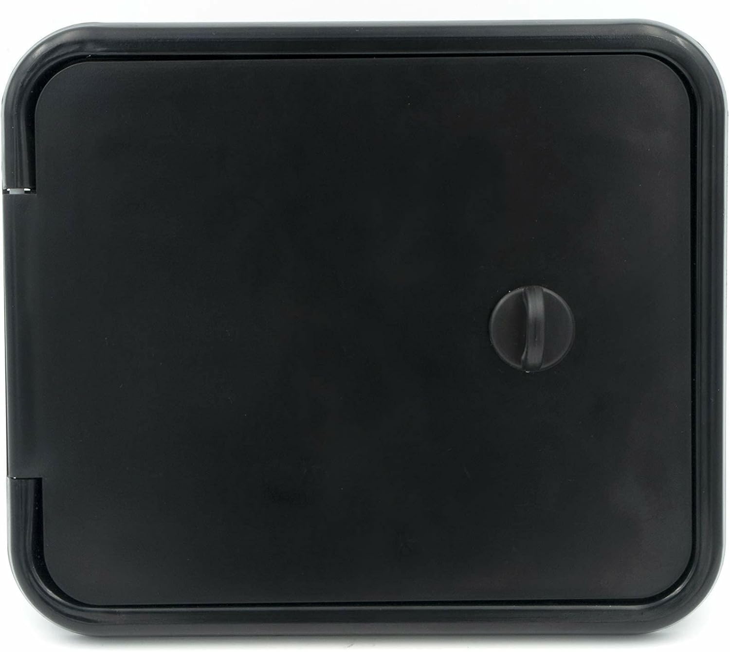 Sewer Hose/Storage Hatch, Thumb turn. Collar depth of PVC attachment 7/16", Cutout Dim: 4-3/4" h x 5-7/8" w, Outside Dim: 6-1/2" h x 7-5/8" w. This product is impact and road salt resistant, as well as NSF, CSA & TEI Certified.