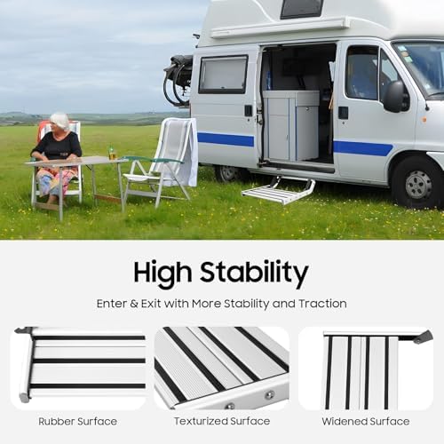 Transform your RV entry experience with our Manual Folding RV Step, designed to enhance safety and convenience for both full-time RVers and weekend travelers. This essential accessory provides a sturdy and reliable platform, ensuring every step in and out of your vehicle is secure and effortless. Upgrade your RV today and discover the quality craftsmanship that makes a difference in your adventures! **Features:** - **Enhanced Access for RV Adventures:** Our RV step is engineered to provide a reliable solution for all your entry needs, making it easier to navigate in and out of your vehicle. - **Durable Stability:** Constructed from high-quality aluminum alloy, this step is built to withstand the rigors of travel, ensuring longevity and reliability throughout your journeys. - **Safety Focused Design:** Prioritizing your safety, this step features a slip-resistant surface that offers a secure footing, reducing the risk of accidents, especially in wet conditions. - **Optional LED Lighting:** Illuminate your path with available LED lighting, making it easier to see the step in low-light situations, enhancing night-time safety. - **User-Centric Design:** Thoughtfully crafted for practical use, our folding step is compact and easy to store, making it a perfect fit for any RV lifestyle. **Specifications:** - Color: Silver - Material: Aluminum Alloy - Light Type: LED (12V/6W) - Load Capacity: 200 kg / 440 lb **Product Dimensions:** - Folding Size: - Single-tier: 552*445*145mm - Double-tier: 552*460*224mm - Unfolded Size: - Single-tier: 552*619*196mm - Double-tier: 552*825*371mm **Package Includes:** - 1 × Folding Step Stool - 1 × Set of Installation Accessories Elevate your RV experience with our Manual Folding RV Step, where safety, durability, and convenience come together for your outdoor adventures!