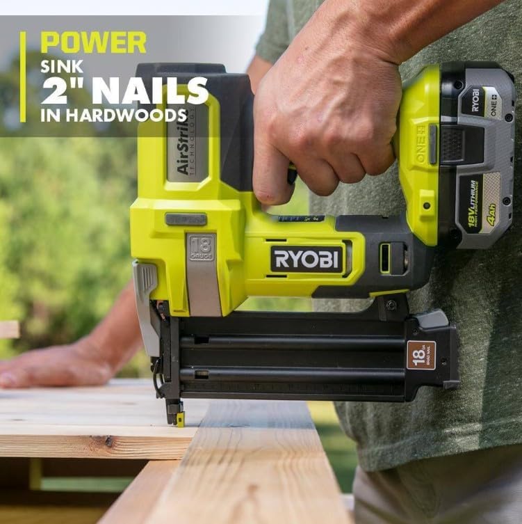 RYOBI introduces the 18V ONE+ 18-Gauge Cordless AirStrike Brad Nailer with Cordless Multi-Tool. This Brad Nailer features AirStrike Technology, which eliminates the need for noisy compressors, bulky hoses, or expensive gas cartridges. This means faster setup and easy maneuverability on the job site. The RYOBI P321 Brad Nailer is capable of sinking up to 2 in. nails in hardwoods. Additionally, it is the lightest cordless brad nailer in its class, which helps prevent user fatigue. This Multi-Tool features the lowest vibration in it's class, helping to reduce user fatigue and ensure precise accuracy. The adjustable speed dial gives the ability to make cuts in drywall, metal, wood, plastic, composite and many other materials, along with the ability to sand the finest details. Best of all, it is part of the RYOBI ONE+ System of over 300 Cordless Products that all work on the same battery platform. includes a Cordless AirStrike Brad Nailer with 2 non-marring pads, a Cordless Multi-Tool with Plunge Cut Blade, Flush Cut Blade, Sanding Pad, (3) Pieces of Sandpaper Assortment, and an operator's manual. Battery and charger sold separately.