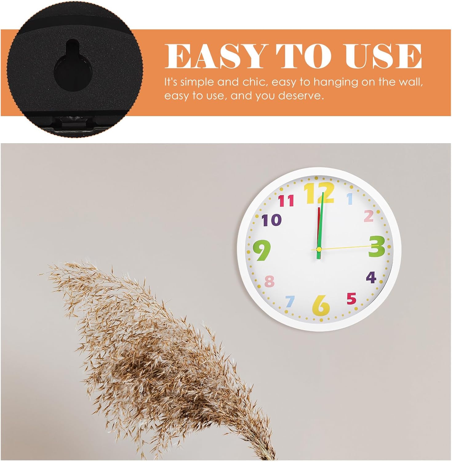 Package List 1 x wall clock Features - Easy to use: It's simple and chic, easy to the wall, easy to use, and you deserve one Wall clock. -Color:White -Note:No batteries teaching clock -Product Info: learning clock -Size:24.50X24.50X3.50cm/9.63X9.63X1.38in -Material:Plastic, metal - and safe plastic materials are used to provide you with durability and utility. Spend more time with your . - Easy to install on walls and other places you want, doesn't require much skill to install. It's very convenient ' room clocks. - Modern cartoon design, suitable for early education tools, suitable for a variety of display styles, very suitable for rooms teaching wall clock. - Used in combination with furniture, perfect for living rooms, bedrooms, kitchens, offices, dining rooms or walls of any color.Goods Informationteaching clock We use materials that will last a long time.analog clock for learning The numbers are clear and perfect for teaching how to tell time.wall clock silent non-ticking If you are looking for a practical and decorative wall clock for your room at a reliable and , I will tell you that our stylish wall clock will be the for you. clock silent It is a perfect early education product