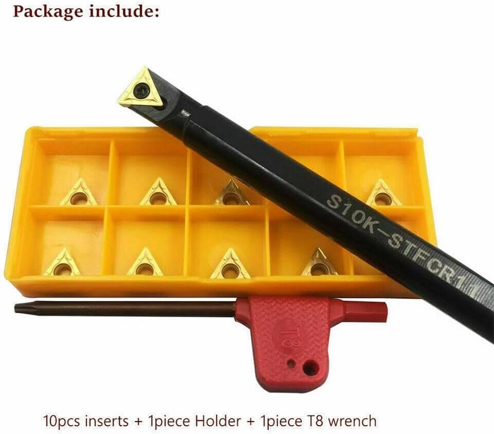 Product description Product Description: and Made of high-quality materials,S10K-STFCR11 lathe internal turning tool holder boring bar + TCMT110204 rtTurning tool post model: S10K-STFCR11Material: carbon steelDirection: right handBlade angle: 91°Square handle (WxH): 10mm x6mmTotal length: 125mmBlade model: TCMT110204Blade material: cemented carbidePackage list:1 *S10K-STFCR11 tool holder1 * Wrench10 *TCMT110204 bladeNote:1.The real color of the item may be slightly different from the pictures shown on website caused by many factors such as brightness of your monitor and light brightness.2.Please allow slight manual measurement deviation for the data. Manufacturer Contact Information Bebykilemi