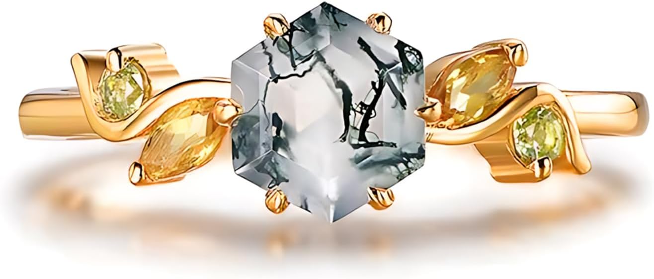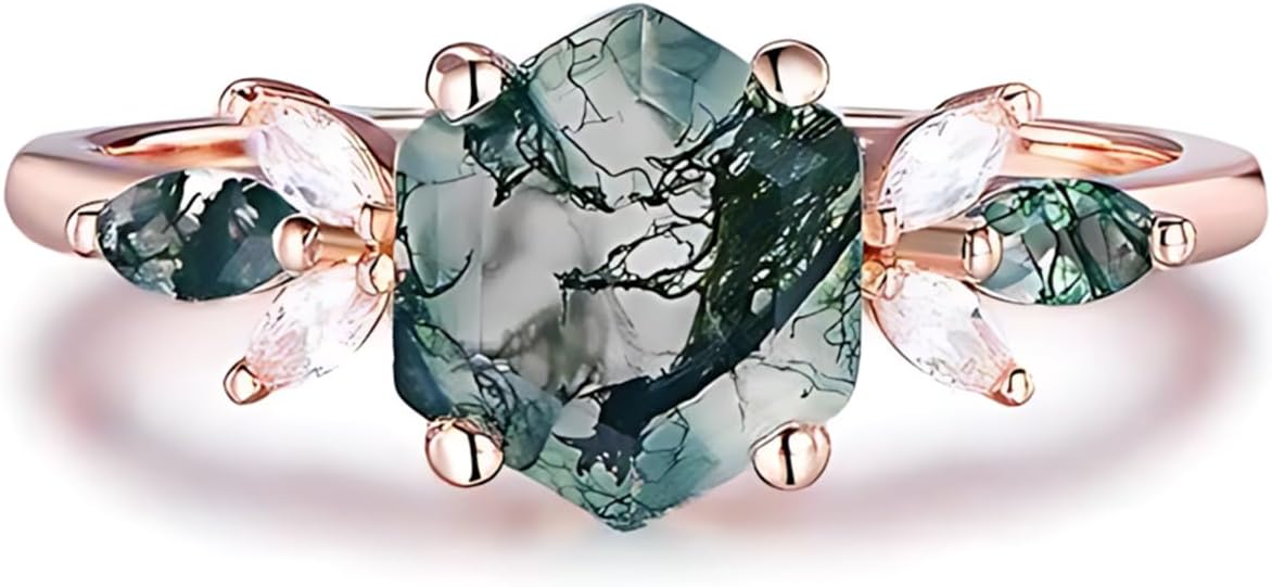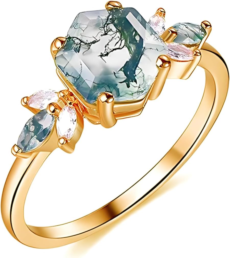 【About Rikelus Jewelry Brand】 Rikelus jewelry brand aims to "light up every moment, shine every story", and is committed to making every piece of jewelry a witness of time and a transmitter of emotion with unique design and exquisite craftsmanship. Everyone's story is unique, so we provide personalized customization services and design exclusive jewelry works according to customer needs and stories. 【Product Features】 This natural moss agate engagement ring is available with different carat gemstones and metals of your liking. The green minerals contained in the moss agate form different patterns, further enhancing the artistic charm of the ring. Moss agate contains the green mineral, which was believed to have healing properties in early times. It symbolizes longevity, health, prosperity, and success. It is often seen as a talisman that brings wealth and wards off evil and negative energy. Personalized jewelry choose from a variety of metals, gemstones and designs. Our jewelry absolutely are the excellent gift you choose to commemorate the occasion reflecting the beauty of the moment. 【Product Specification】 Material: 10/14/18 karat gold/925 sterling silver with 1-3 carat natural moss agate Color: White Gold, Yellow Gold, Rose Gold Size: 4-12 PACKAGE: Jewelry*1 ; Wipe Clothing*1; Gift Box*1 【Customized Steps】 First step: click the yellow button “Customize Now” Second step: choose the ring color, stone carat, ring size, and engraved name Third step: click the button “Add to Cart” Fourth step: check information and submit orders