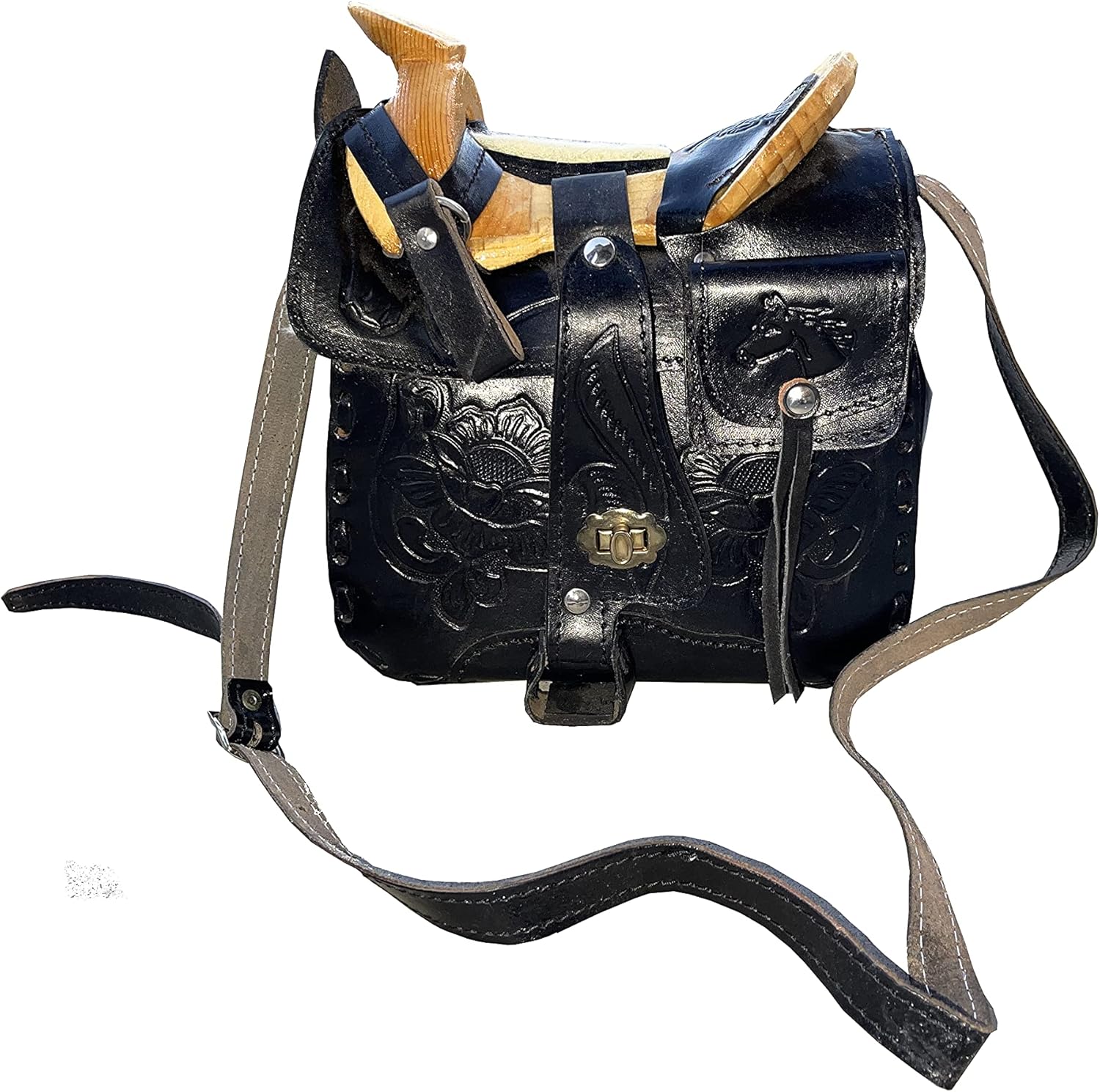 Beautiful one of a kind western leather saddle style purse made with leather for a classic western look. This saddle purse is an amazing work of art Fleece lining inside, unlined compartment. Perfect For A Gift Strap Size: 45” x 7/8” wide. Bag Size: 9.5x10x4inches