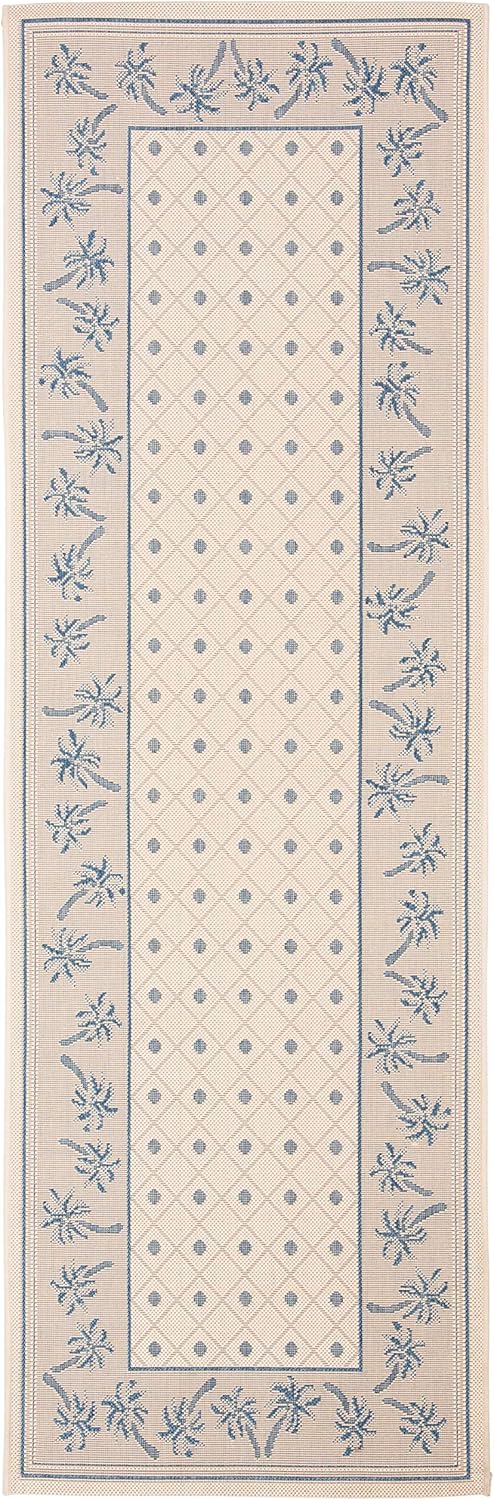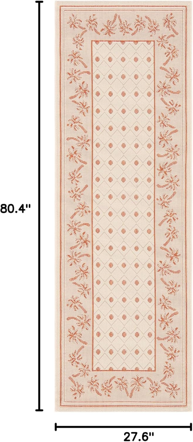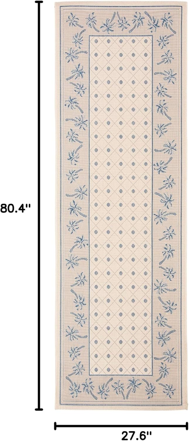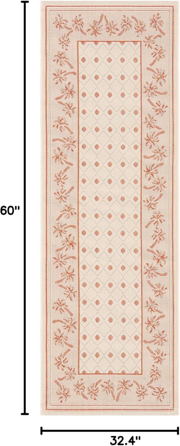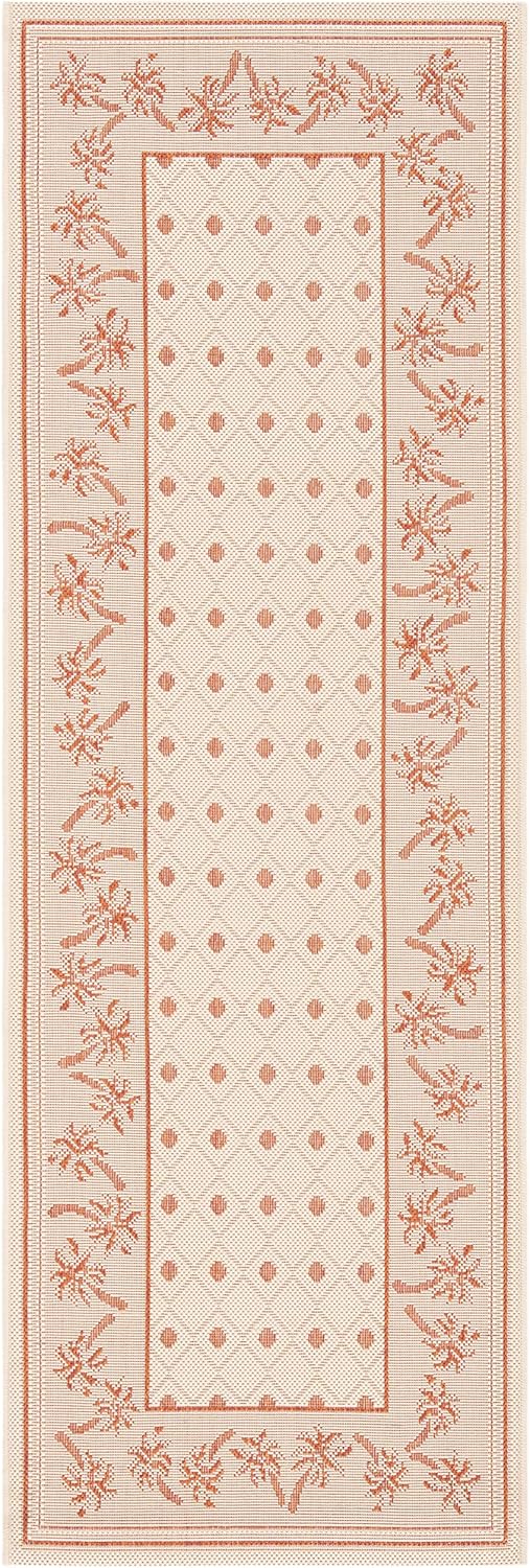 Safavieh's Courtyard Collection is inspired by timeless designs crafted with the softest polypropylene available. This rug is crafted using a power-loomed construction and features a main accent color of ivory. Perfect for any backyard, patio, deck or poolside, this rug will instantly turn your outdoor area into a resort-style entertaining space. Finely crafted for seasons in the sun and years of open-air gatherings, the Courtyard rug instantly elevates any interior or exterior décor to a space of visual inspiration. More than a decorative enhancement, and easy carefree maintenance. With its style, practicality, and transitional decorating options, this rug extends an open invitation to gather and may just spark impromptu parties. Primary Color: IvoryPile Height: 0.25 inches Material: Polypropylene Style: Contemporary Construction: Power-loomed Rug Type: Indoor/Outdoor Feature: Latex Free Rug Dimensions: 2'3" x 6'7"