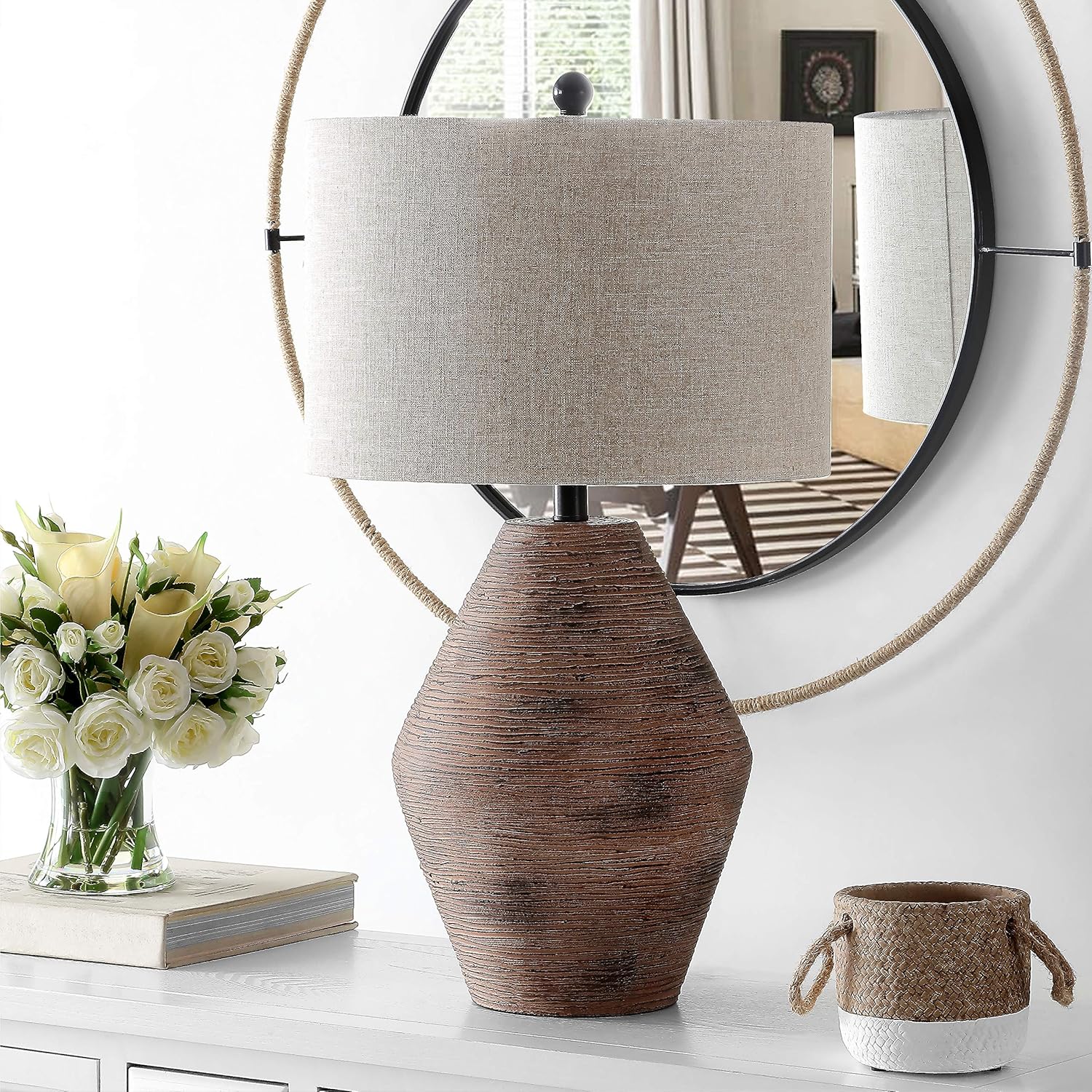 Taking inspiration from the ancient potter, this Detris Lamp gives any décor an artistic cultured touch. Detris’s subtly textured and gently angled gourd silhouette is beautifully highlighted by earthy brown tones, and an oatmeal drum shade updates the look.