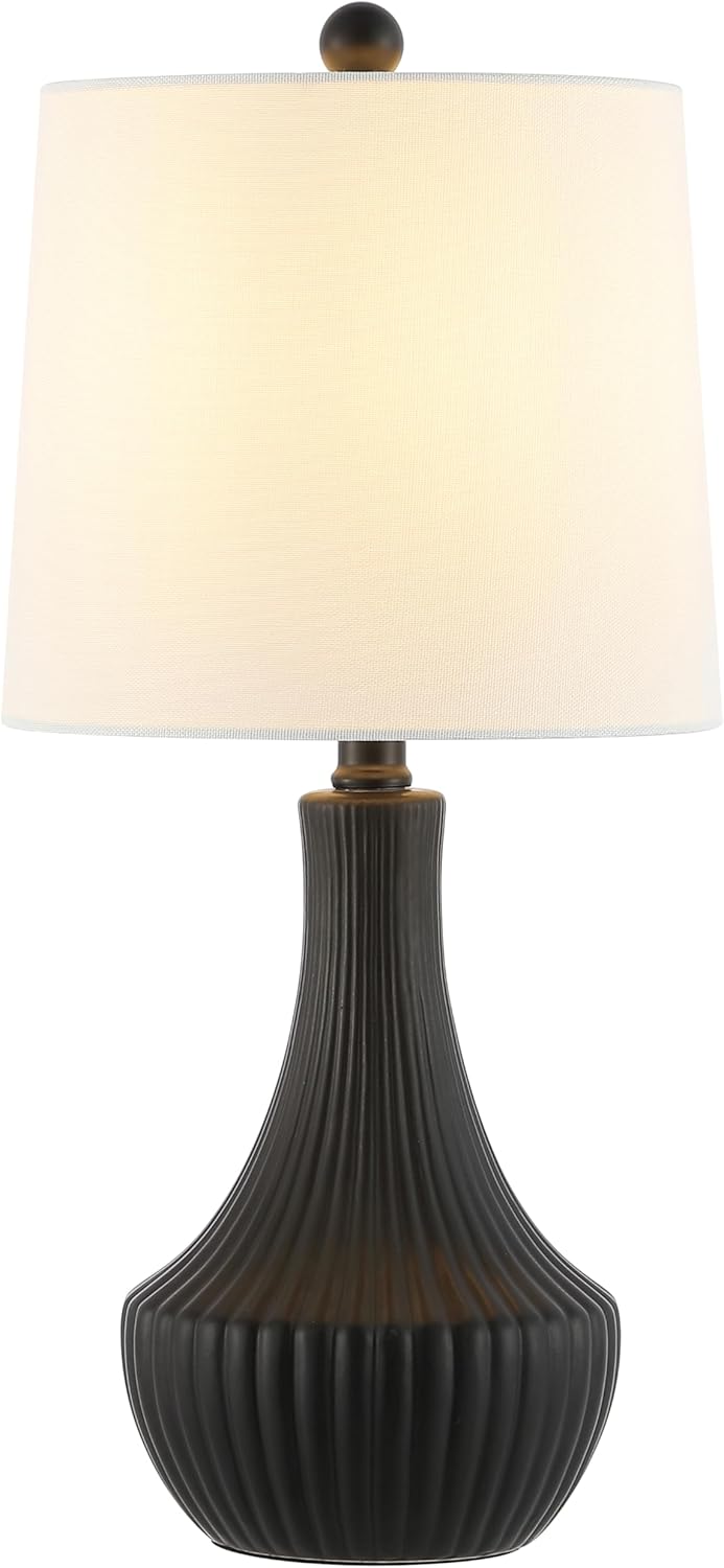 Add an effortless touch of sophistication to your table decor with our Herleva table lamp. Featuring a black ceramic base that gracefully widens and curves at the bottom, our table lamp vouches for a sleek and sensuous appeal. A rich and voluminous ribbing detail beautifully catches the light and adds a dose of character to our table lamp. It is completed with a sleek white shade to lend soft illumination and a dose of style to your nightstand, console, desk, or side table.