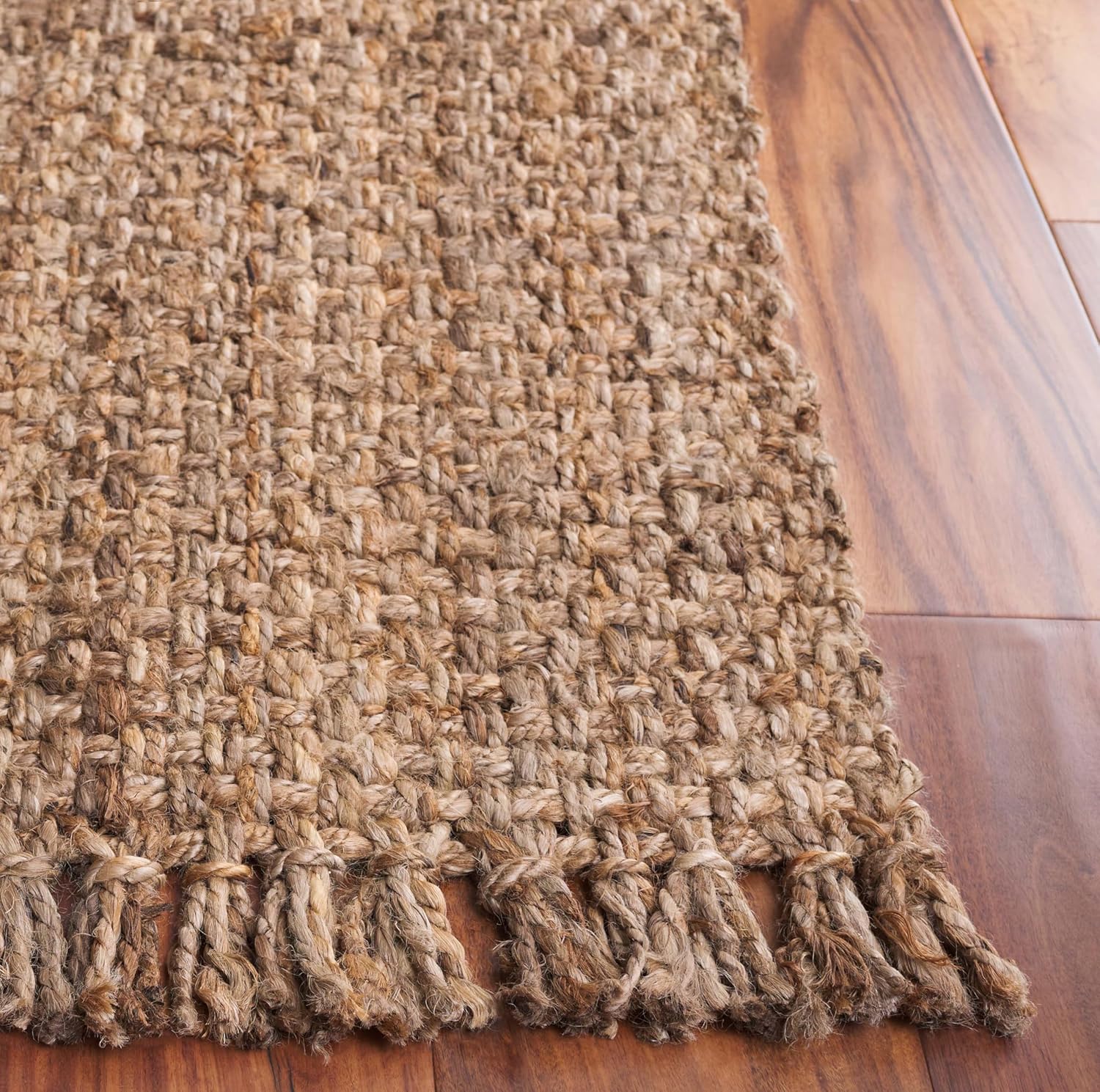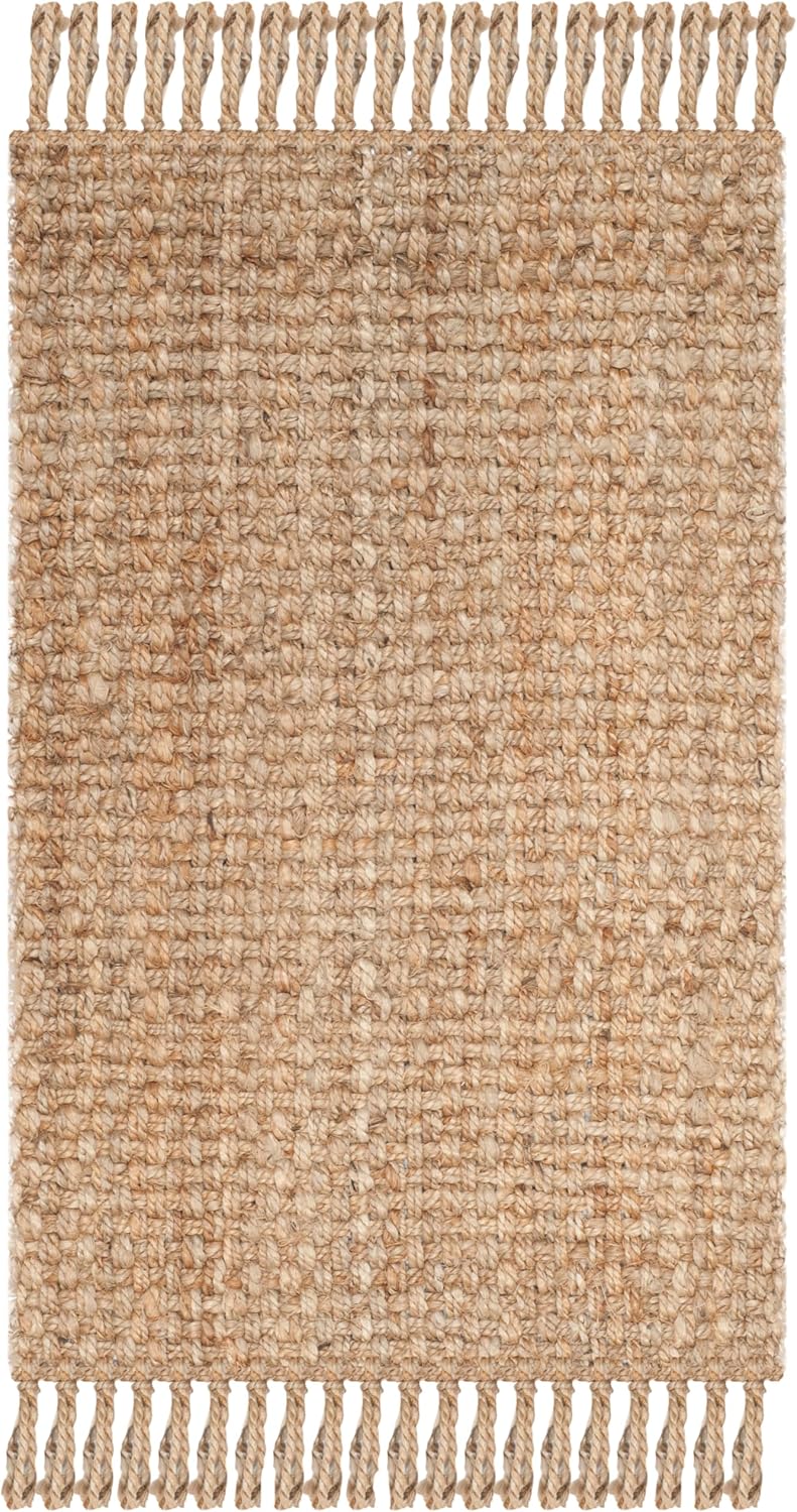 Create an effortlessly relaxing haven in your home with a hand-woven natural fiber jute rug by Safavieh. Fringed edges promote a casual carefree aesthetic, and a woven construction creates a boho-chic look. Its neutral brown color makes it versatile for different styles of décor, from coastal to farmhouse.