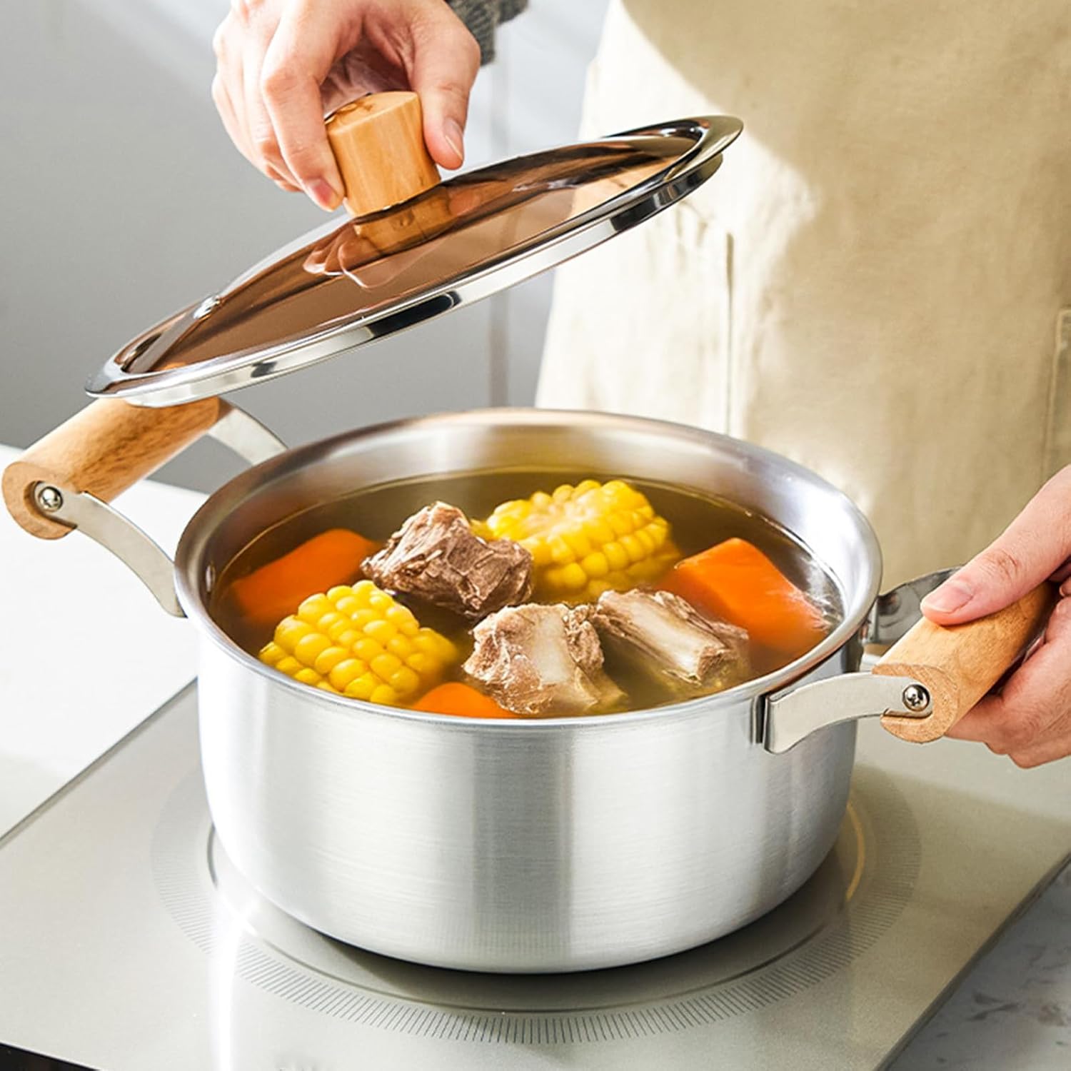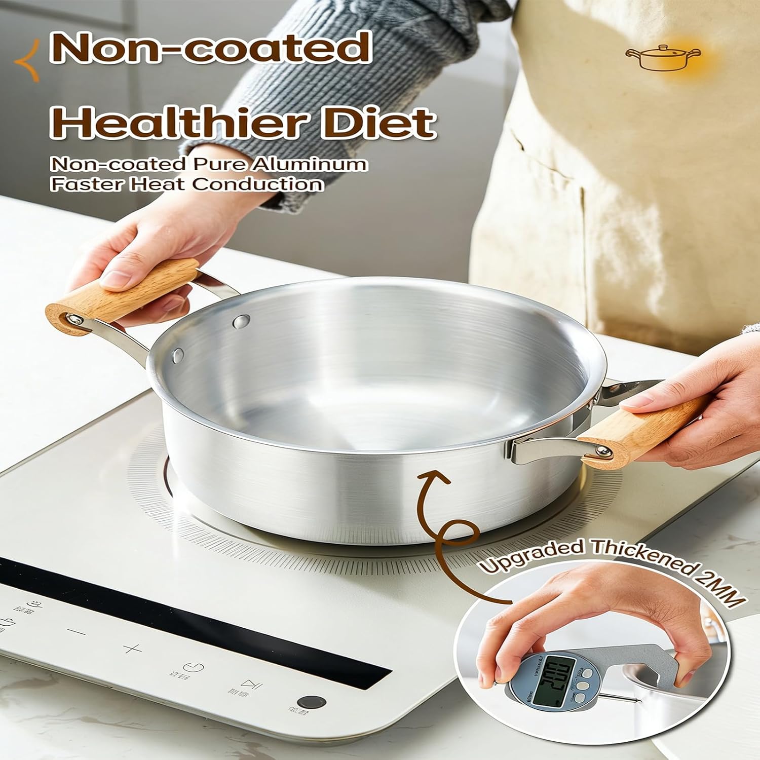 Safe Aluminum Cookware With Excellent Heat Conductivity And Comfortable Double Wood Handle For Secure Meal Preparation Features: Safe Construction: Made from aluminum without coatings, this cooking pots supports safe meal preparation for families focused on wellness Perfect for daily soups and slow cooking dishes Superior Heat Conduction: The aluminum build delivers fast and even heat spread, enhancing cooking Great for busy households needing efficient mealpreps option Easy to Handle Design: Compared to traditional cast iron cookware, this aluminum vessel allows simpler control during food preps Especially useful for elderly users or those with limited strength Natural Wood Handle: Features a practical wooden grip that stays comfortably warm during use, avoiding heat transfer Ensures stable control throughout prolonged cooking tasks Multi Purpose Cookware: Suitable for various kitchen tasks including pasta cooking, broth making, and slow cooking across different heat sources like induction and stove A must have for varied culinary needs Specifications: Component: Aluminum, Wood Color: As pictures shown Size: approx 31.5x15.5cm / 12.4x6.1in Package Includes: 1pc aluminum soup pots with lid Note: Please allow 1-3cm error due to manual measurement please make sure you not mind before you bid Due to the differences between different monitors, the picture may not reflect the item actual color