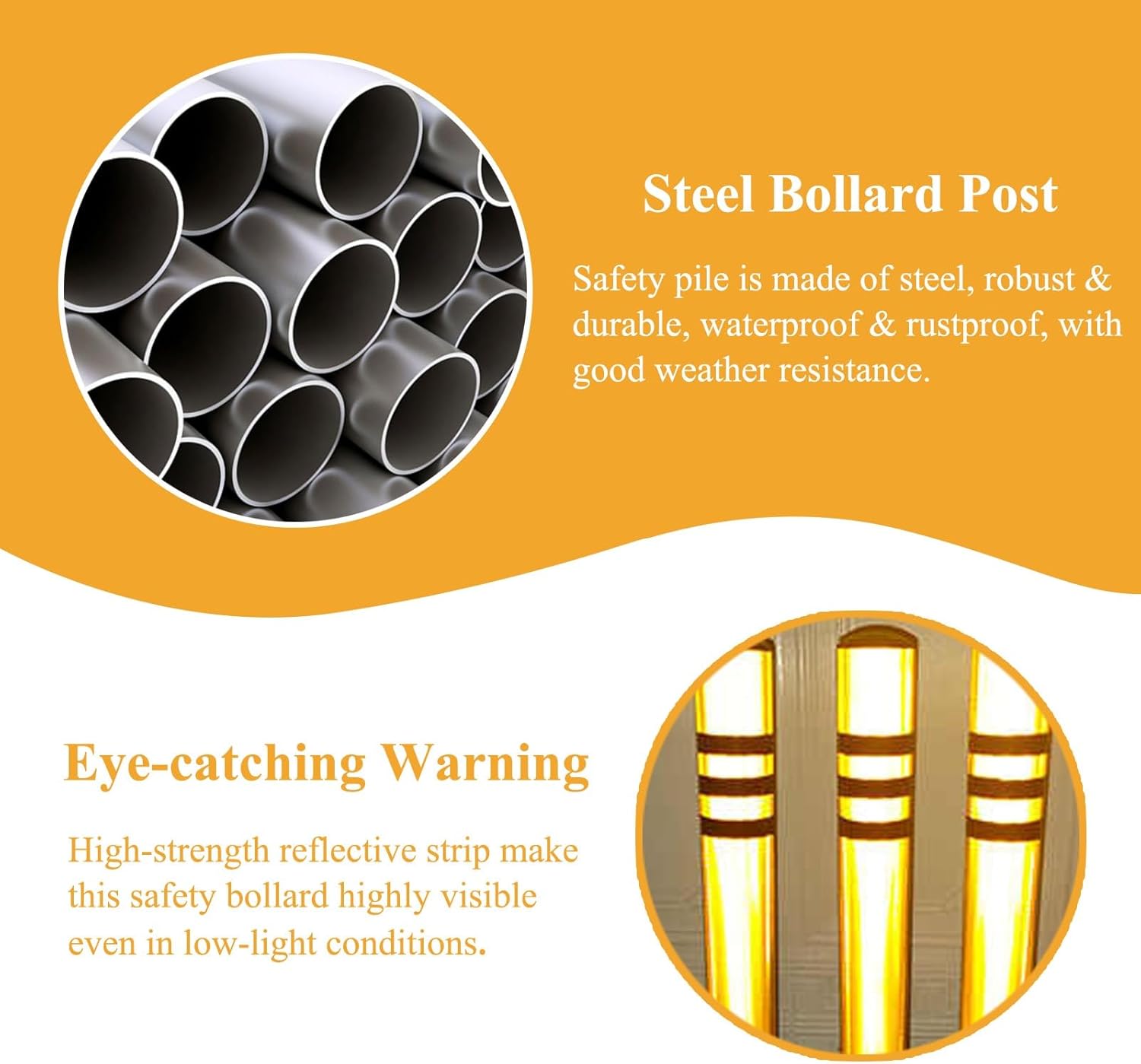 Lockable Parking Safety Barrier:- Wondering which delineator bollard will fit your needs? - Bollard covers a variety of uses in different environments,from solving annoying parking lot hassles to improving asset protection. Eye-catching color draws the people's attention in dimly lit environments,preventing accidents,injuries,and property damage. Specifications: - Material: Steel - Post Size: Dia 7.6cm( 3" ),Dia 8.9cm( 3 1/2" ),Dia 11.4cm( 4 1/2" ) - Post Height: 60cm( 23 5/8" ),75cm( 29 1/2" ),100cm( 39 3/8" ),120cm( 47 1/4" ) - Installation: Ground Mount Features: - Made of steel,sturdy & durable for long- term use. - Heavy duty base enhances stability and solidity. - Warning stripes ensure nighttime visibility & increase safety. - Bollard post has pre-drilled holesfor easy installation. - For driveway,parking lot,sidewalk,bike lane,etc. - Used for traffic delineation,crowd control,warn of danger. Package Contents: - 1 x Safety Bollard - 4 x Screws Notes: - The color may exist a slight difference due to different screen displays. - Manual measurement,please allow slight errors on size. Quality Services: - If there is any question about the product,please do not hesitate to contact us,we will reply you promptly.
