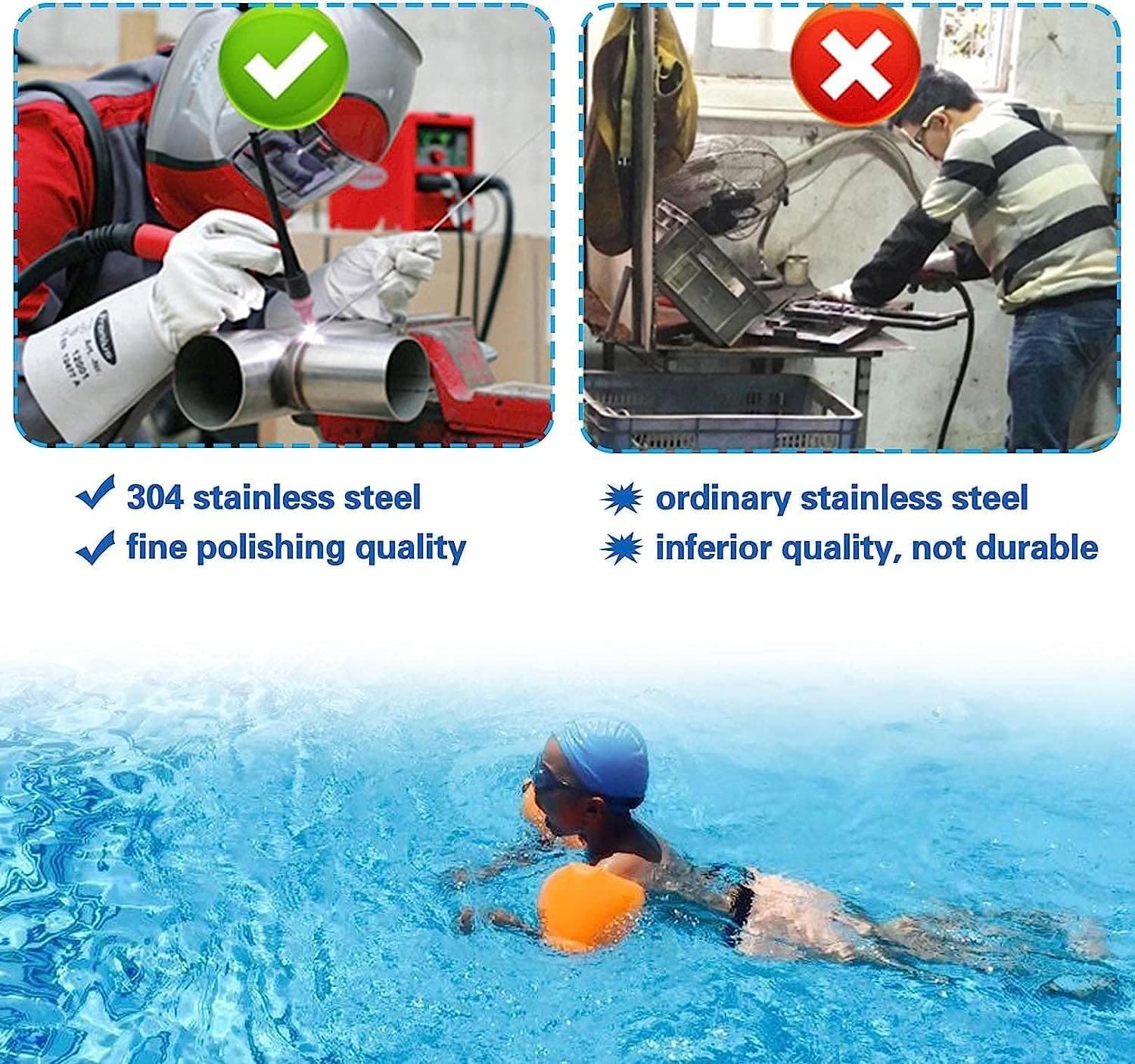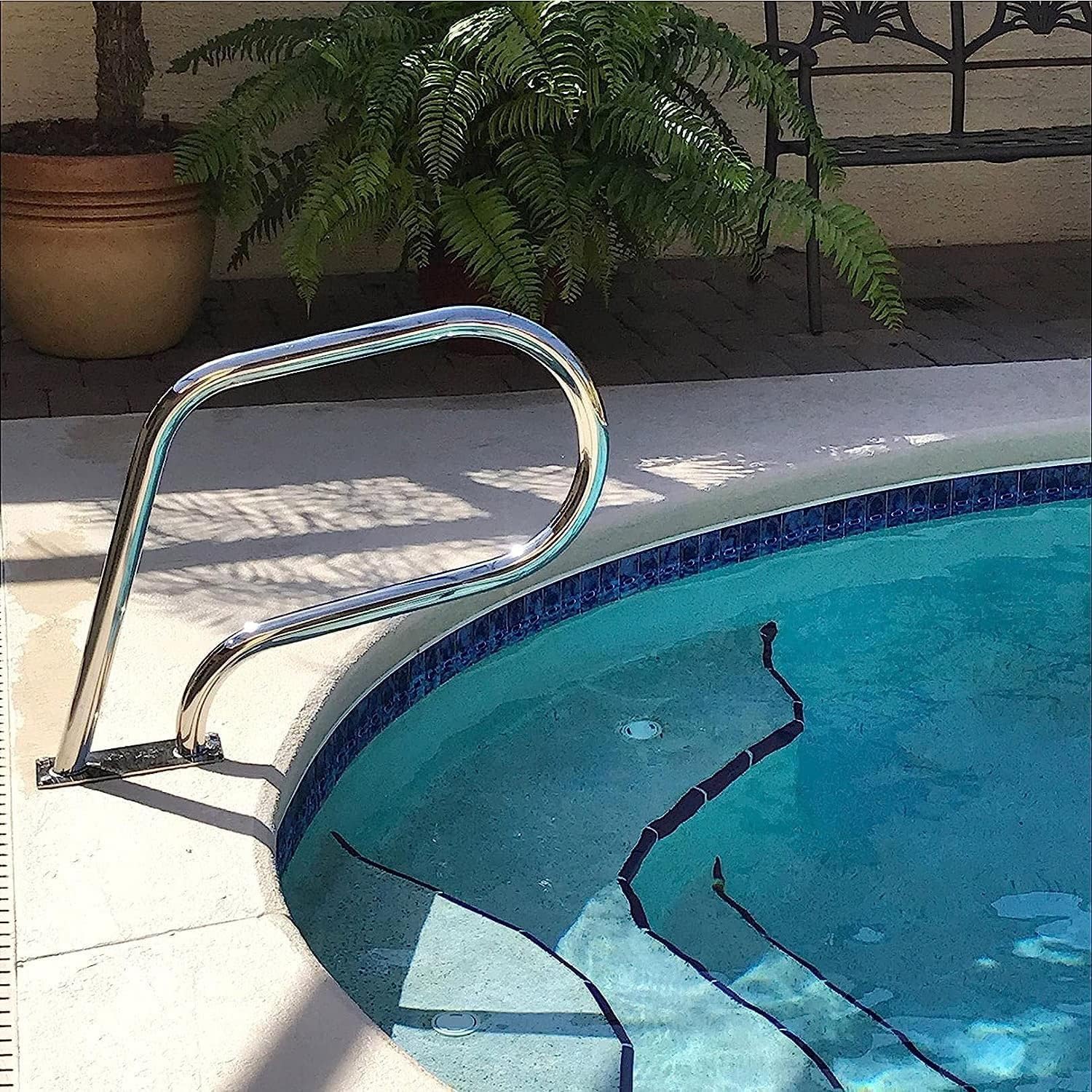 Hot summer has arrived, and our swimming pool handrails will help you to enjoy the water entertainment in the pool. Specification -Color: Sliver -Material: 304 Stainless Steel -Product Dimension: 81x57cm -Product Thickness:1mm Package Include: 1 x Swimming Pool Handrails 1 set of accessories 1xSwimming pool armrest cover Feature -Premium 304 stainless-steel material is antirust and durable -Humanized curved structure ensures easy grasp -Polished surface with great gloss can remain for a long time -Slightly sloped design for getting in and out of the pool easily -Solid widen base plate adds extra stability and sturdiness -Quickly mounts Applicable Scene The handrail is the most cost-efficient choice for various places, which is suitable for swimming pool, sloped entry, spa, water park, etc. Note:Because manual measurement may have an error of 1-3cm, I hope you can understand.