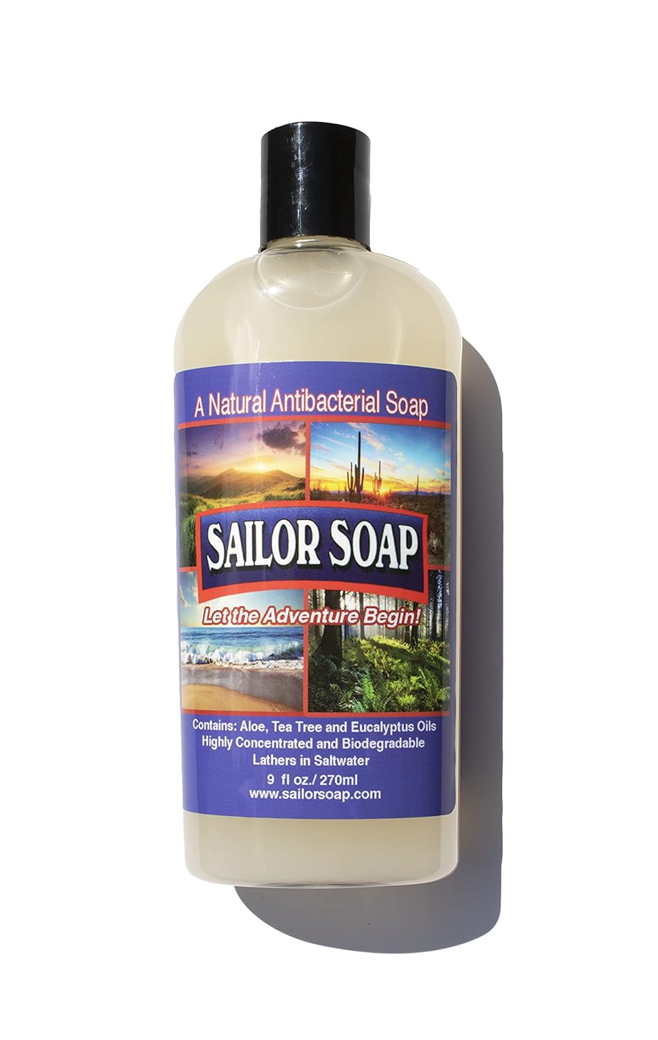 Includes: 3- 9oz Sailor Soaps and 1- 2oz Sailor Soap. Sailor Soap is 100% biodegradable soap. It is great for camping, boating, backpacking and exploring the great outdoors. It can be used for washing dishes, hands, and bathing with the environment in mind. This soap is tested to be biodegradable. It lathers in freshwater, saltwater, brackish water, hot, and cold water. Made in Ohio, U.S.A