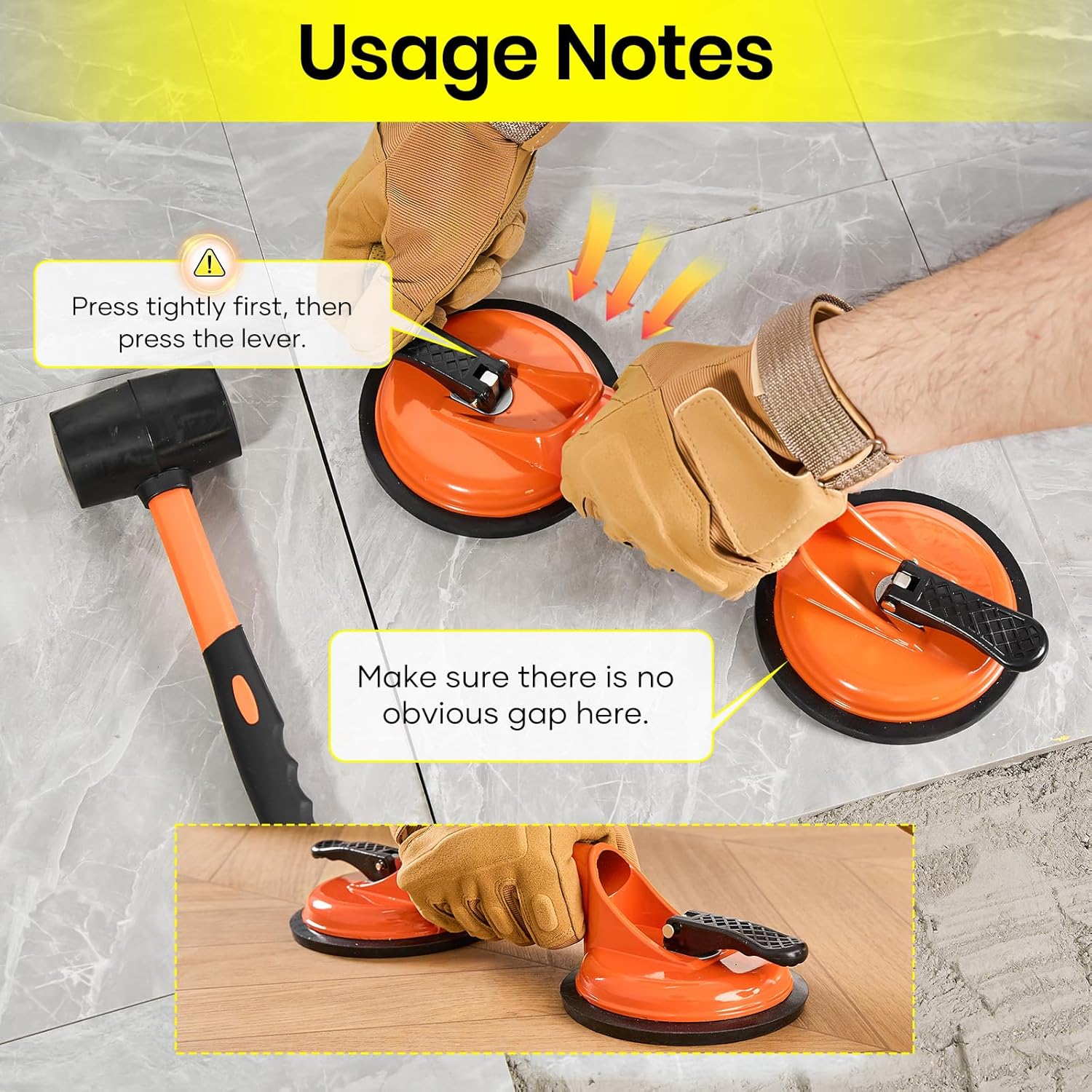 Saker Laminate Floor Gap Repair Tool,Suction Cup Lifter and Rubber Mallet,Floor Gap Repair Kit,for Floating Wood Floors and Moving Glasses (Orange)