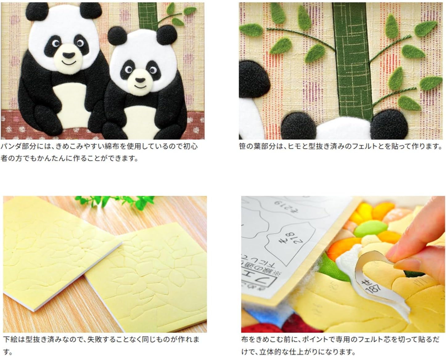 This 8-inch series is recommended for first-time users. [Uses] Kimekomi Patchwork Craft Kit Features: Easy to make fluffy and cute pandas. [Precautions] Frame sold separately. How to make: Apply a thin bond to the entire back of the kimekomi board and stick it to the backing paper. Perforates all the saws of your kimekumi board Apply the pattern sticker to the specified fabric and cut with a solid line. Remove the stencil sticker from the cloth and seal the cloth into the designated treadboard. Insert the felt core in the designated area and tighten the cloth. Attach the parts when all done building is complete