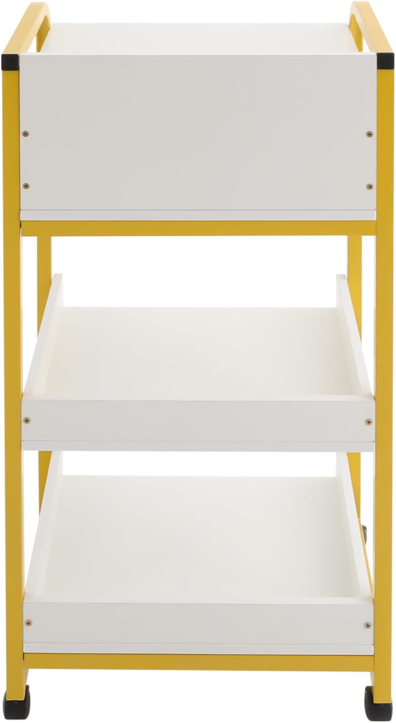 DetailsThoughtful Guardrails: Carefully designed guardrails along the edges of each shelf effectively prevent items from sliding off, providing additional safety assurance and thereby avoiding damage caused by accidental falls.Easy-grip Handle: It makes opening and closing your drawer a breeze, adding a touch of convenience to your everyday life! ApplicationThis product is suitable for various occasions, such as barber stores, spas, homes, beauty stores, and pedicure and manicure stores for storing hair tools and other equipment and tools. It is ideal for beauticians and hairdressers. It can store hair dye, hair care essential oils, scissors, combs, curling irons, and other hair accessories.SpecificationMaterial: PVC, SteelProcess: Spraying PlasticColor: Gold, White/Gold, Marble-like ColorStyle: ModernShape: RectangularNumber of Shelves: 2 (Not Including The Top)Number of Drawers: 1Assembly Required: Yes Installation Type: Floor StandingNumber of Universal Wheels: 4(2 with Brakes)Product Size: 44*34*80 cm/17.32*13.39*31.5 inTotal Load Capacity: About 25 kg/55.12 lbsPackage Size: 92.5*41.3*10 cm/36.42*16.26*3.94 inGross Weight: 10 kg/22.05 lbsNet Weight: 9.5kg/20.94 lbsPackage Included1* Salon Storage Cart 1* English Installation ManualOther Accessories for Assembly