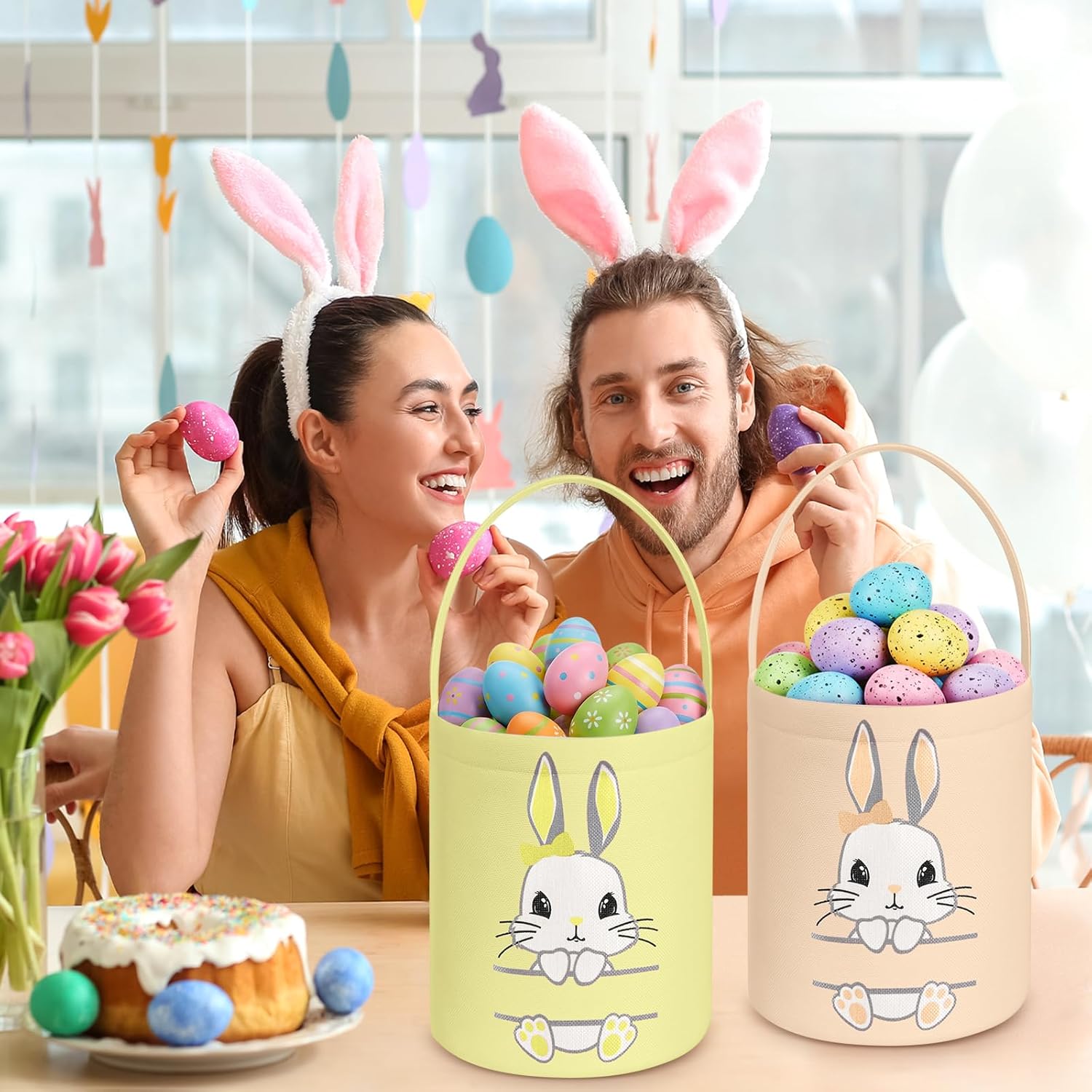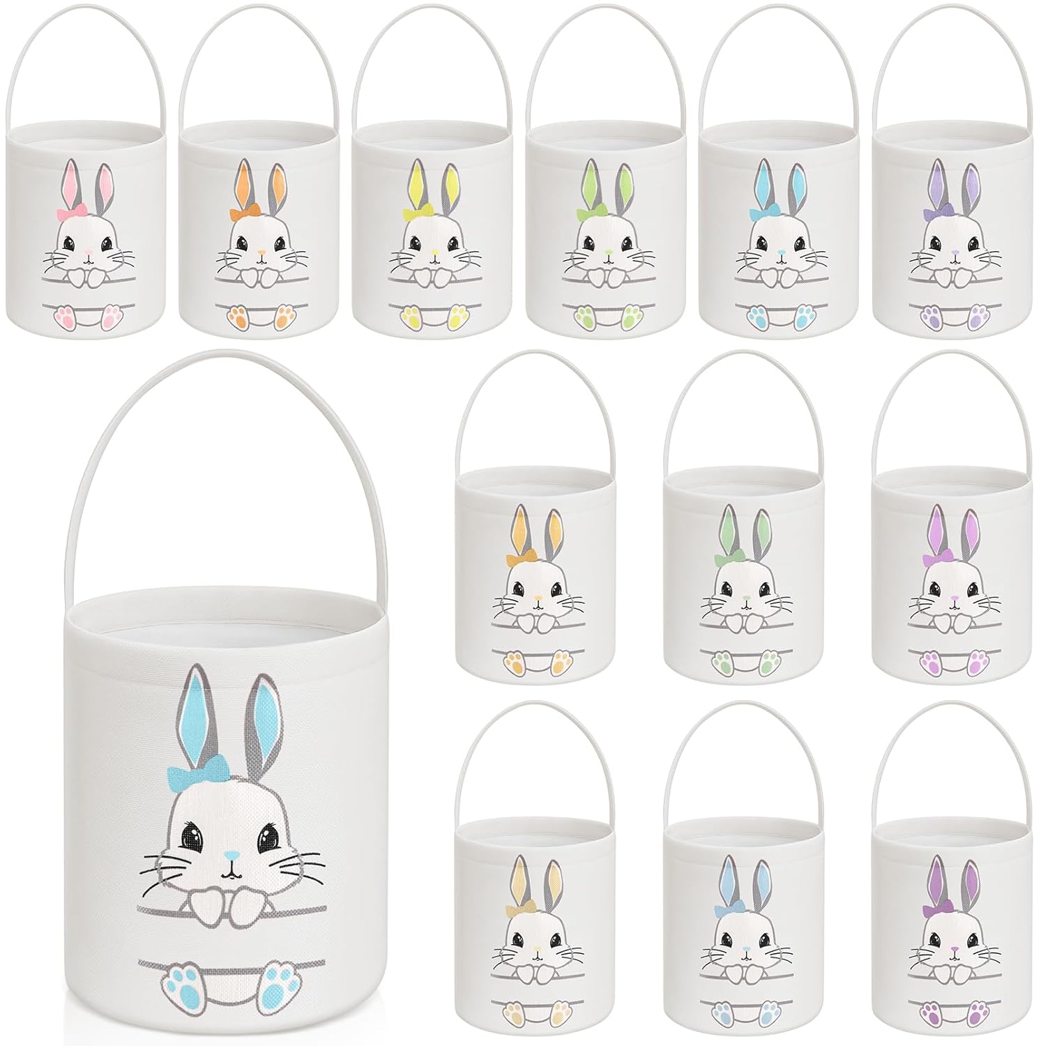 Features: This Easter bunny basket bag can not only be served as the Easter basket, but also can be applied as a gift bag in daily life, and it is suitable for decoration, bunny themed parties. The Easter bucket basket is suitable for many other occasions, such as Easter parties, gifts and so on, bunny tote bags can use it to get a lot of candies and colorful eggs, creating a joyous Easter atmosphere. Specifications: Material: canvas Color: pastel color Size: about 7.87 x 9.84 inches/ 20 x 25 cm Package includes: 12 x Easter bunny baskets Notes: Manual measurement, please allow slight errors on size. The color may exist a slight difference due to different screen displays