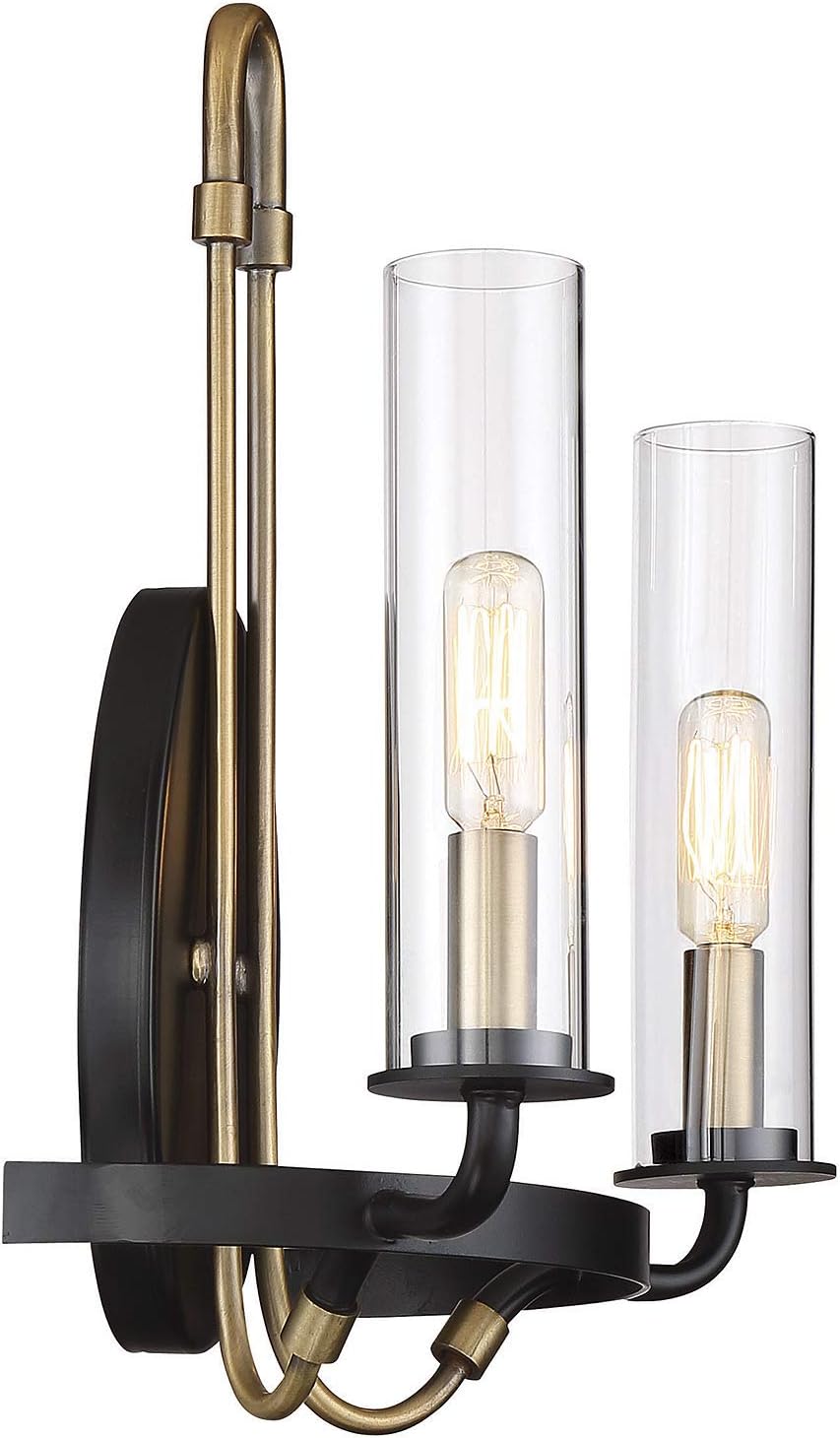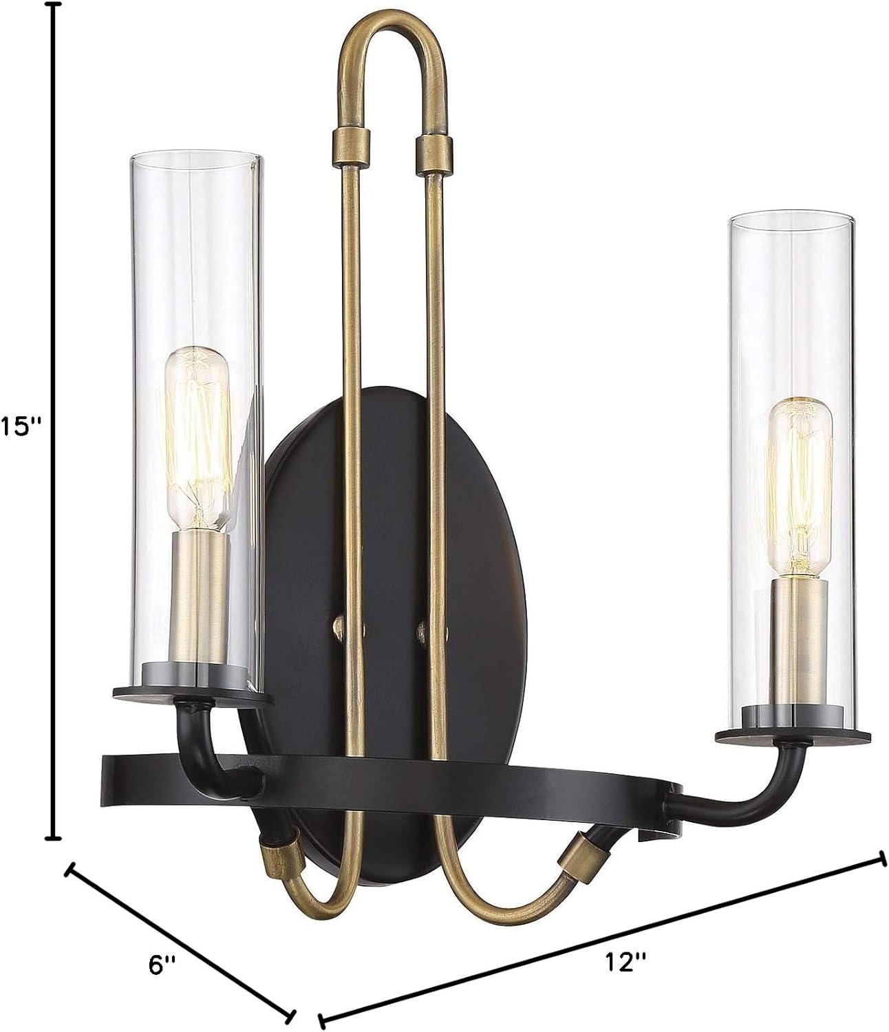 This Savoy House kearney 2-light sconce brings you two-tone style with a slim, airy structure that is finished in vintage black with warm brass accents.