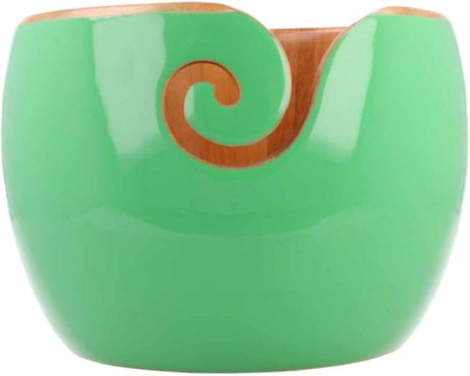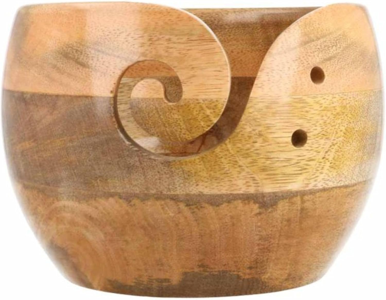 The Scheepjes yarn bowl combines teak wood, rosewood, and leather to create a stunning visual effect with vertical stripes. The bowl features horizontal strips of black leather on its exterior, adding a touch of elegance. Measuring 15cm wide and 9cm high, this yarn bowl is smoothly polished and meticulously handcrafted, ensuring each piece is unique and may vary slightly in appearance. Simply place your yarn ball inside the bowl and thread the yarn through the spiral opening on the side. With the yarn securely held in place, you can focus on your knitting or crocheting projects without interruptions.