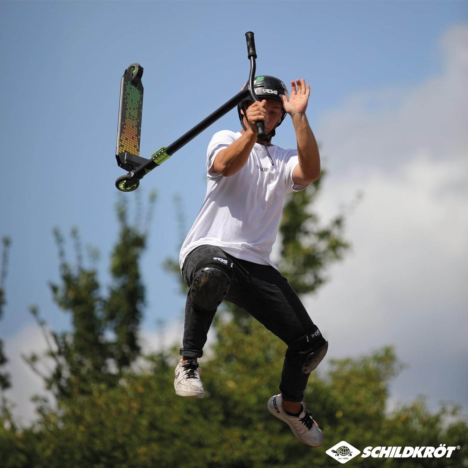 • The Kickless is the new stunt scooter from Schildkröt. Perfect for all tricks and stunts ; an ideal companion for the skate park. Quality equipment at a value for money price