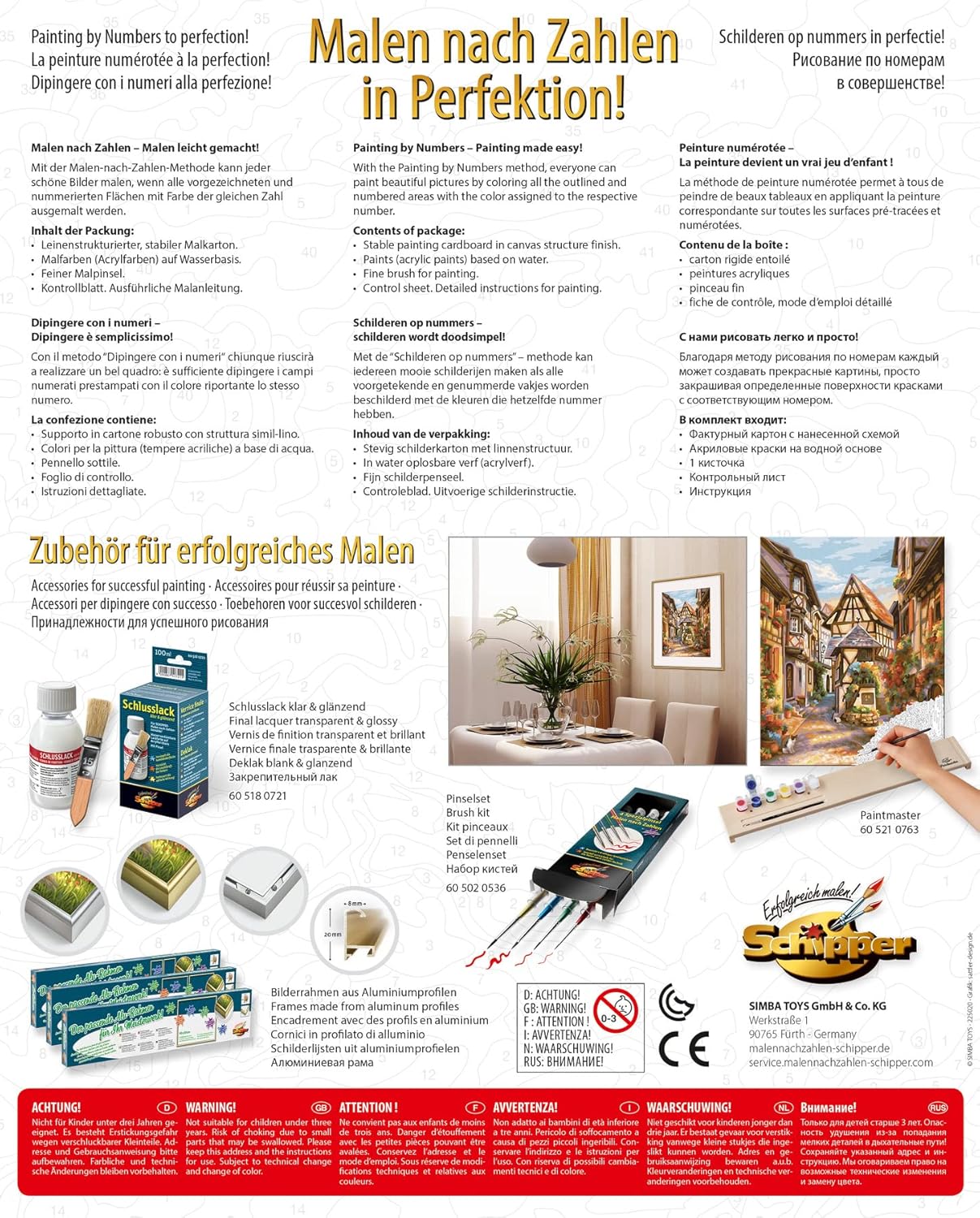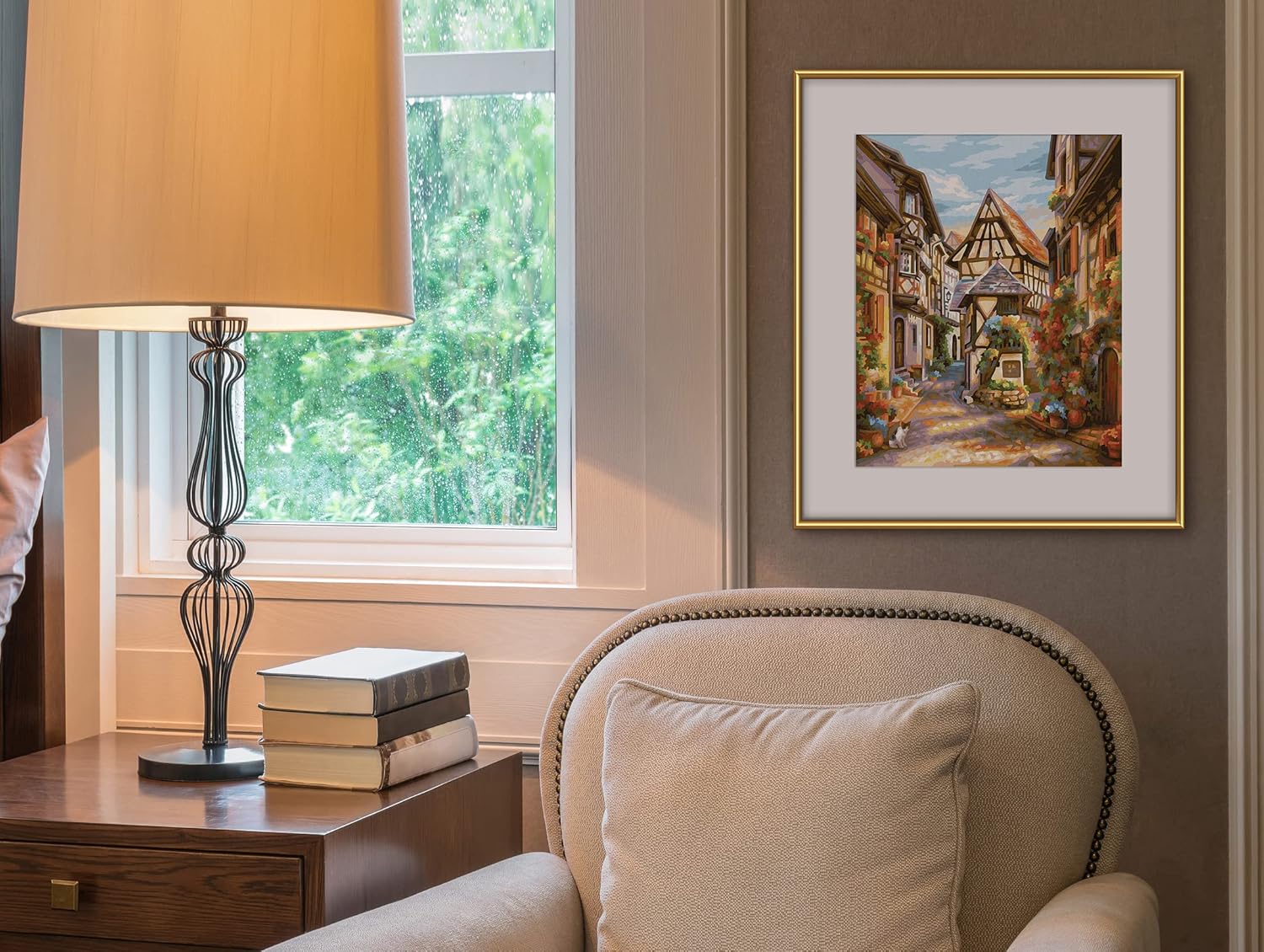 This charming paint-by-number scene features a narrow cobblestone street through a European village with charming old-world buildings covered with flowers. This inviting city pathway welcomes you to travel via the tip of your paintbrush as you re-create this delightful image. This premium paint-by-number kit is created by a well-known German artist with high-quality pre-mixed artist’s paints. Kit includes pre-printed textured art board, pre-mixed acrylic paints, artist paintbrush, and easy instructions. Finished painting measures 9½ x 12" (24 x 30cm). Paint-by-number kit includes pre-printed textured art board, pre-mixed acrylic paints, artist paintbrush, and easy instructions. Artwork features a cobblestone pathway through a European village with narrow streets and charming old buildings covered with colorful flowers. Painting measures 9½ x 12" (24 x 30cm). Frame not included.