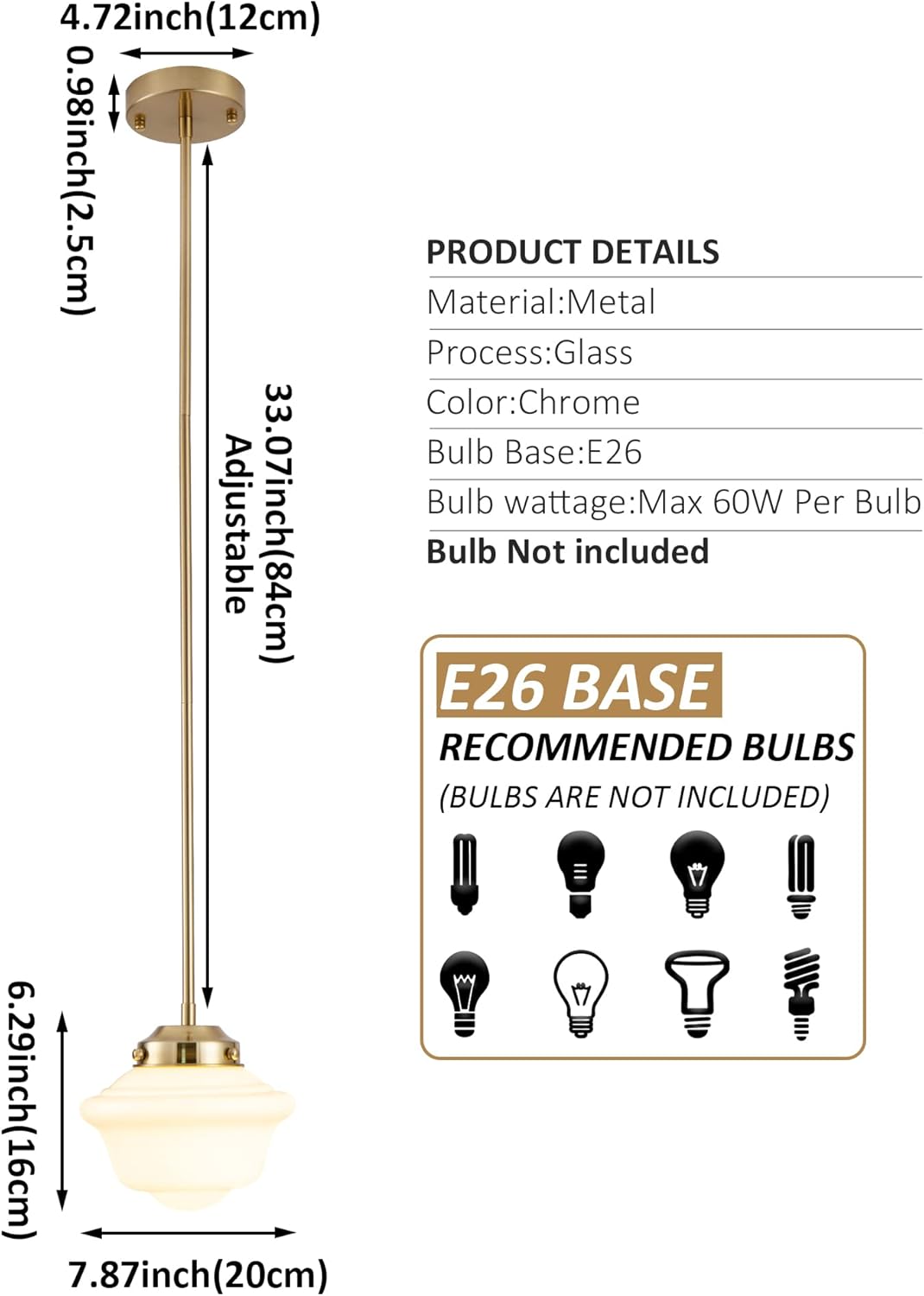 | Other Special Features of the Product | Adjustable Height, Dimmable, Schoolhouse Pendant Light |