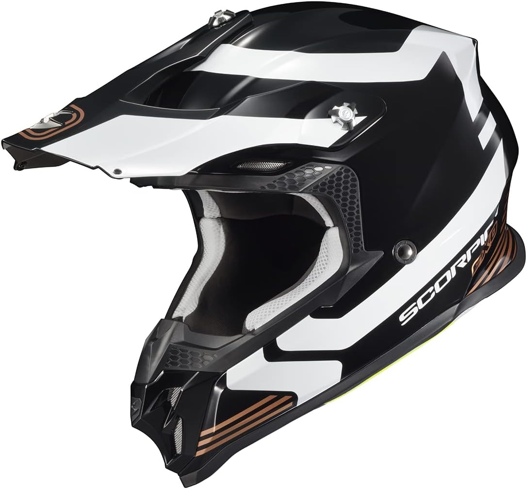 Advanced polycarbonate shell is engineered to be lightweight, strong and maximize impact displacement | Dual-density advanced multi-layer EPS provides efficient energy displacement | Two intake ports across the eyebrow allow cool air into the helmet and force unwanted hot air out of the two rear exhaust ports | AirFit Liner Inflation System features an inflatable cheek pad system for superior personalized fit (Exclusive to ScorpionEXO) | DOT approved. Meets the FMVSS 218 Standard