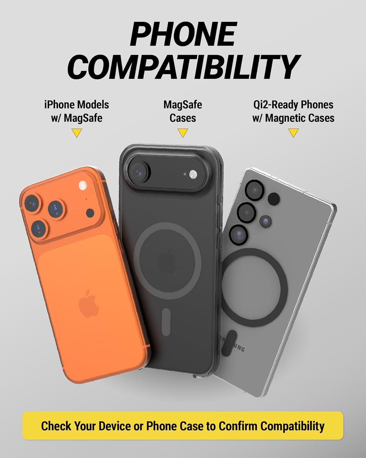 | Compatible Phone Models | Apple iPhone 17 / iPhone Air / iPhone 17 Pro / iPhone 17 Pro Max / iPhone 16 / iPhone 16 Plus / iPhone 16 Pro / iPhone 16 Pro Max / 15 / 15 Plus / 15 Pro / iPhone 15 Pro Max / 14 / 14 Plus / 14 Pro / 14 Pro Max / SE 3 / 13 / 13 Pro / 13 Pro Max / 13 Mini / 12 / 12 Pro / 12 Pro Max / Google Pixel 10 / Pixel 10 Pro / Pixel Pro 10 XL / Samsung Galaxy S25 Ultra / S25 Edge / S25+ / S25 with a magnetic case |