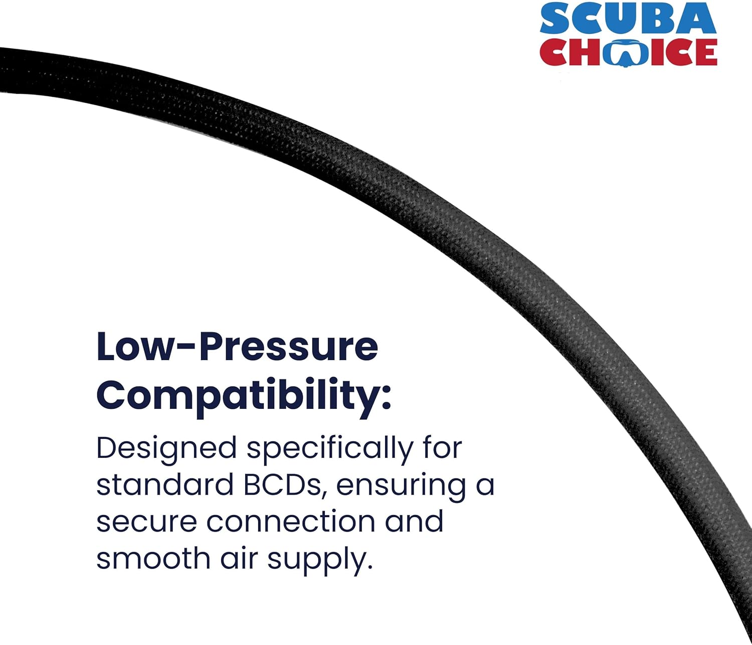 The Scuba Choice 27" Black LP Low Pressure Braided Hose is a durable and flexible replacement or upgrade for your standard buoyancy control device (BCD). Featuring a strong TPE inner core and polyester mono filament outer layer, it offers superior strength, abrasion resistance, and long-lasting durability.This low-pressure hose supports a 1,000 PSI working pressure and 4,000 PSI burst pressure, providing reliable performance for a variety of underwater activities. Its lightweight and flexible design enhances mobility, while the 27-inch length is perfect for most BCD setups.Designed for both recreational and professional divers, this hose delivers comfort, ease of use, and 177kgf tensile strength for durability under high-stress conditions.Why Choose Scuba Choice?Founded in Los Angeles in 2011, Scuba Choice brings over three decades of expertise in scuba diving gear. As a leader in wholesale and retail distribution, we offer a wide range of high-quality diving products, ensuring you get top-notch gear at competitive prices, backed by excellent customer service.