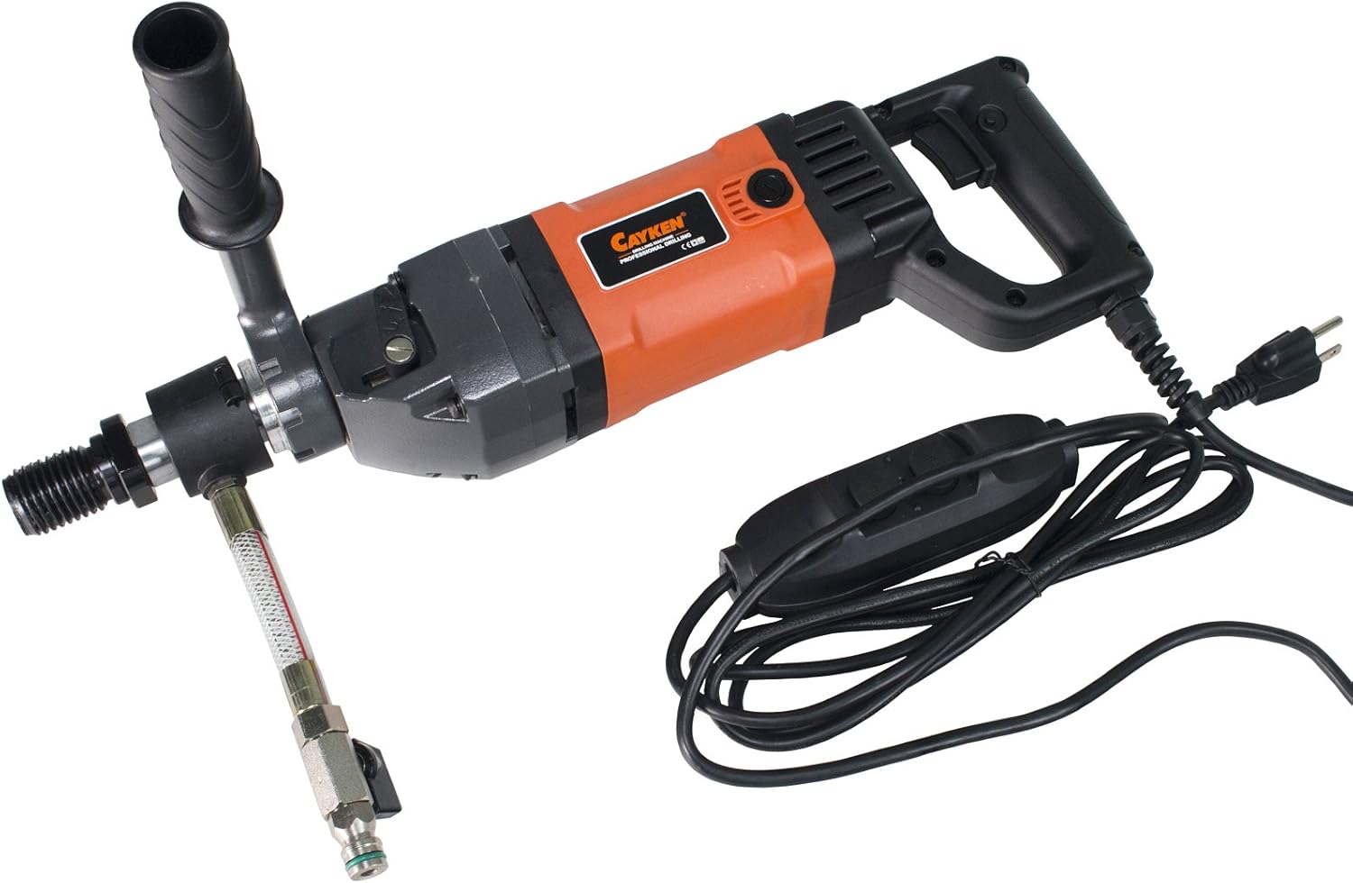 Cayken SCY-18-2EBM 5in. Wet Dry Handheld Diamond Core Drill Rig 2.5HP 1900W DrillThe Cayken SCY-18/2EBM handheld core drill is designed for wet or dry core drilling up to 5-inch holes in reinforced concrete, brick, stone, rock, ceramic, and fireproof materials. This drill features variable speed with two gears and 2.5 HP. Spline is 16 MM x 2.0. Features safety clutch and overload protection. This core drill is easy to transport from job to job while offering clean smooth holes drilling. The Cayken SCY-18/2EBM is CE/ ROHS/ ISO90001 Certified. Specifications: Brick Drilling Range: 5 in. (132 mm) Concrete Drilling Range: 3 in. (80 mm) Rated voltage: 110 V Rated frequency: 60 Hz Rated input power: 1,900 W Horsepower: 2.5 HP Spline: 16 mm x 2.0 Spline Adapter: 16 mm x 2.0 Box to 1-1/4 in. x 7 TPI Male Variable speed with Two Gears: 700 RPM; 1050 RPM Net Weight: 11 lbs. Product Features: Designed to drill up to 5-inch holes through reinforced concrete, brick, stone, rock, ceramic, and fireproof materials. Offers high efficiency, pristine accuracy and smooth holes. 1/4-inch water valve connect for wet coring. Side handle for stability. Light weight, portable hand-held core drill. Step-less speed regulation. Safety clutch and overload protection. Softstart - electronic current limiter ensures a softer start. 7-1/2-foot GFCI power cord. Includes carrying case and wrench. CE/ ROHS/ ISO90001 Certified Does not include drill bit.