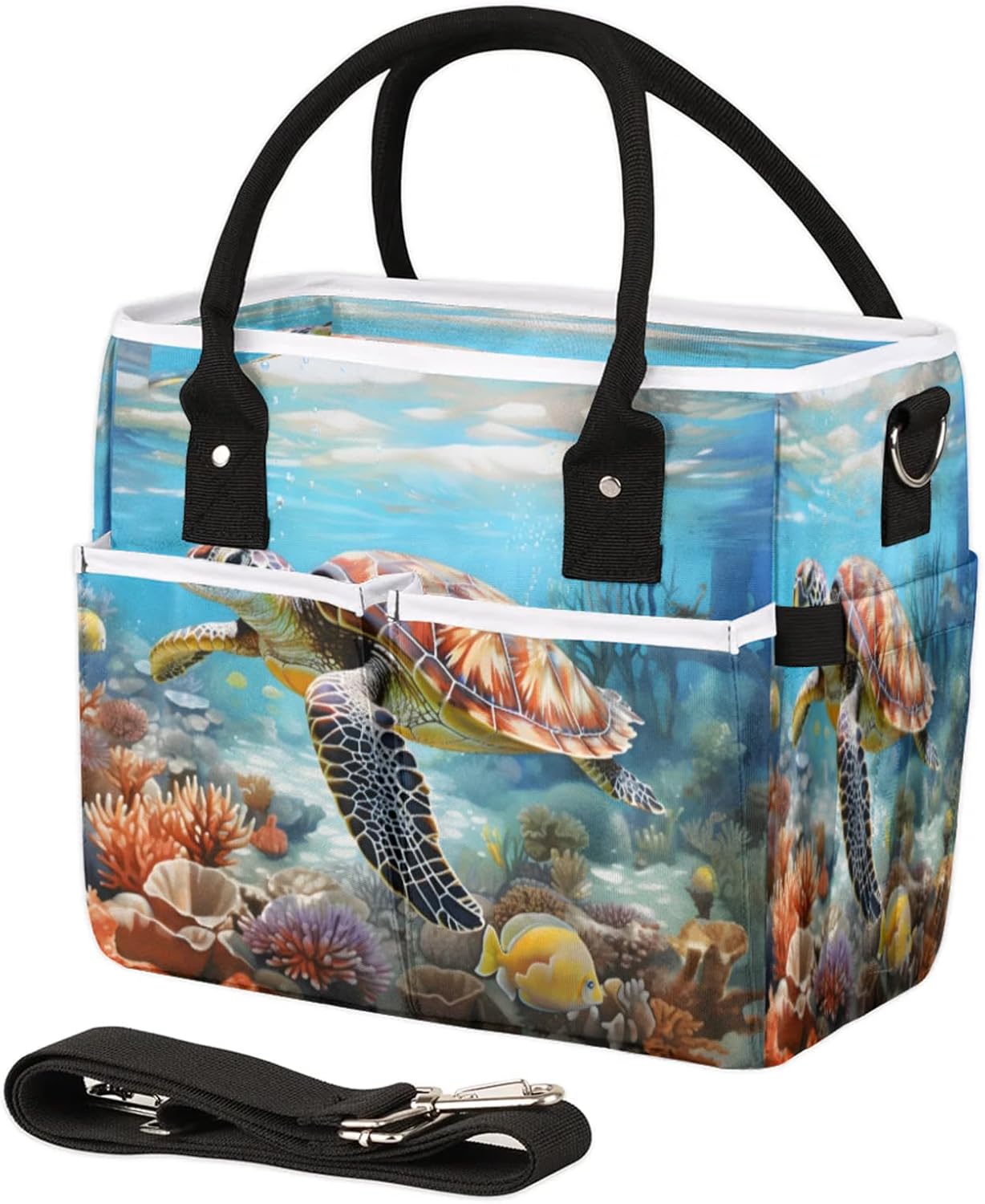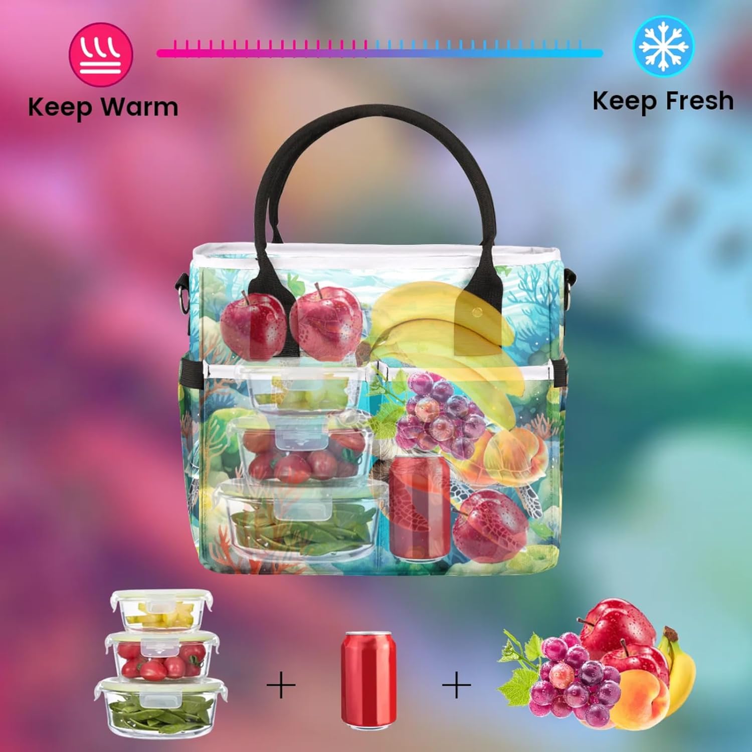 This our large lunch box is made of high-quality Three-layer insulation design. Our reusable lunch box is made of Oxford cloth and polyester fiber, the inner lining is made of food-grade EVA material, and the middle layer is filled with high-quality thick pearl cotton insulation. Reusable lunch box can keep food cold and hot for hours. There are 4 pockets on the outside of the lunch bag and 2 side pockets. Special pockets for napkins, water bottles, cutlery, etc. Can hold lunch boxes, food, fruits, drinks, etc. Leakproof and easy to clean. If sauce spills inside, just wipe it with a damp cloth or napkin. Equipped with an adjustable and detachable shoulder strap, it is easy to carry and can be adjusted to your preferred length. The sturdy handle makes it easy to carry with one handVersatile. Suitable for various indoor and outdoor occasions, such as office, work, travel, beach, picnic, party, camping, etc. Can be used as daily lunch bag, sundry bag, cooler bag, shopping bag, picnic bag and cosmetic bag. Ideal gift for women, men, wife, husbands, family, friends, mother, fathers and yourselfExterior Dimensions: 11L x 6.5W x 10H inchesWeight: About 1 lbCapacity: 11.8 LMaterial: Polyester / EVAOpening and closing method: ZipperProduct includes: 1 lunch boxCare InstructionsRegular Cleaning: To remove dirt and odors, clean your sports bag with a damp cloth after every useDeep Cleaning: For a deeper clean, occasionally hand wash the bag in cold water using a mild soapDrying: Ensure the bag is completely dry after each use before closing or storing it.