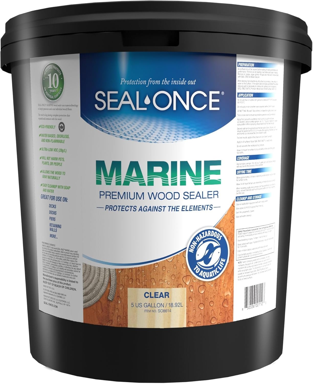 MARINE is a premium waterproofing dock sealer & deck stain. It deeply penetrates the surface to protect and stabilize wood in high-moisture locations. It is an Eco-friendly wood finish, with ultra-low VOCs, and is safe to use around pets, plants & people. Formulated for use on wood near open water, non-hazardous to aquatic life. Recommended for wood boat docks, pool decks, walkways, piers & outdoor furniture near ocean, lakes, ponds & rivers