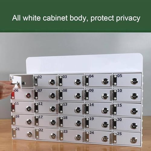 This mobile phone storage cabinet is designed for versatile compatibility with a wide range of mobile phone models, offering secure partitioned storage with dedicated compartments for your devices. It features flexible installation options, suitable for desktop use or convenient wall-mounting, making it a multi-purpose storage solution perfect for organizing keys, wallets, cards, and mobile phones. Crafted from durable acrylic, it comes in various grid configurations to suit different needs. The cabinet includes a key lock for enhanced security, with two keys provided. Ideal for effective storage and management of mobile phones in various settings such as classrooms, conference rooms, and workshops. Please note, the main images showcase the 25-grid model, and shipments will be based on the grid configuration selected as per the size chart, not the images shown. Enhance your organizational system with this mobile phone storage cabinet, designed for both convenience and security.