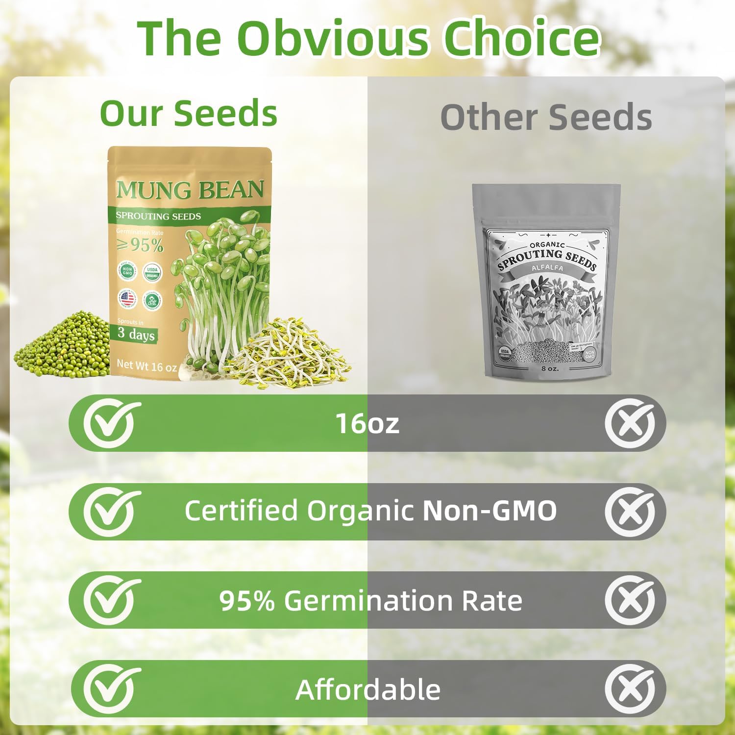 Seed Sprouting Kit with Mung Beans 80g and Organic Mung Bean Sprout Seeds (16 oz)