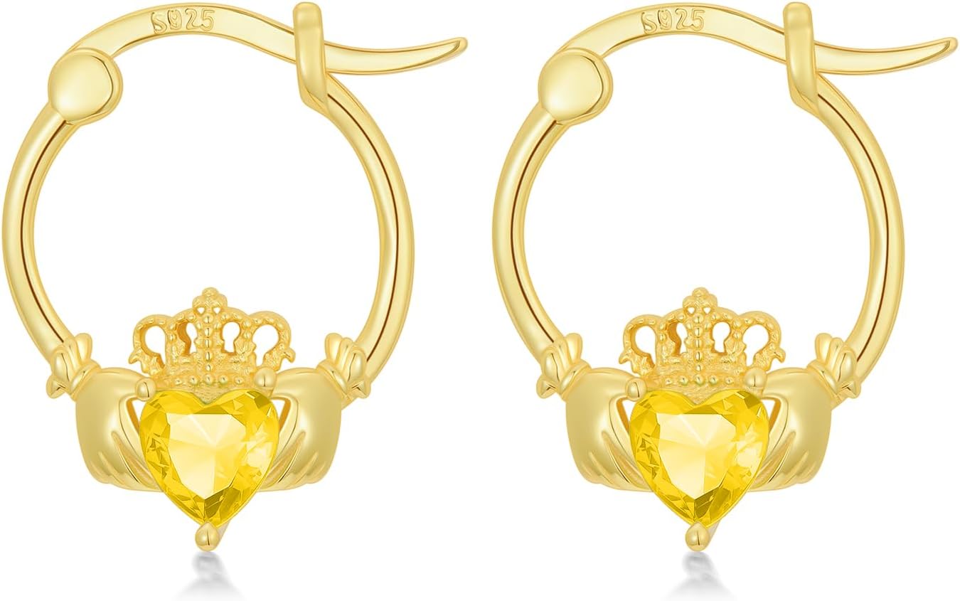 Celebrate your unique story with Claddagh Birthstone Earrings. These 925 sterling silver claddagh hoop earrings blend the iconic Irish Claddagh symbol, meaning “with my hands I give you my heart,” with monthly birthstones. From January’s garnet of love to December’s blue topaz of harmony, each stone carries special significance. They come in an elegant box, perfect for gifting on Mother’s Day, anniversaries, or any occasion. Ideal for daily wear or special events, these earrings are a timeless reminder of love and care.