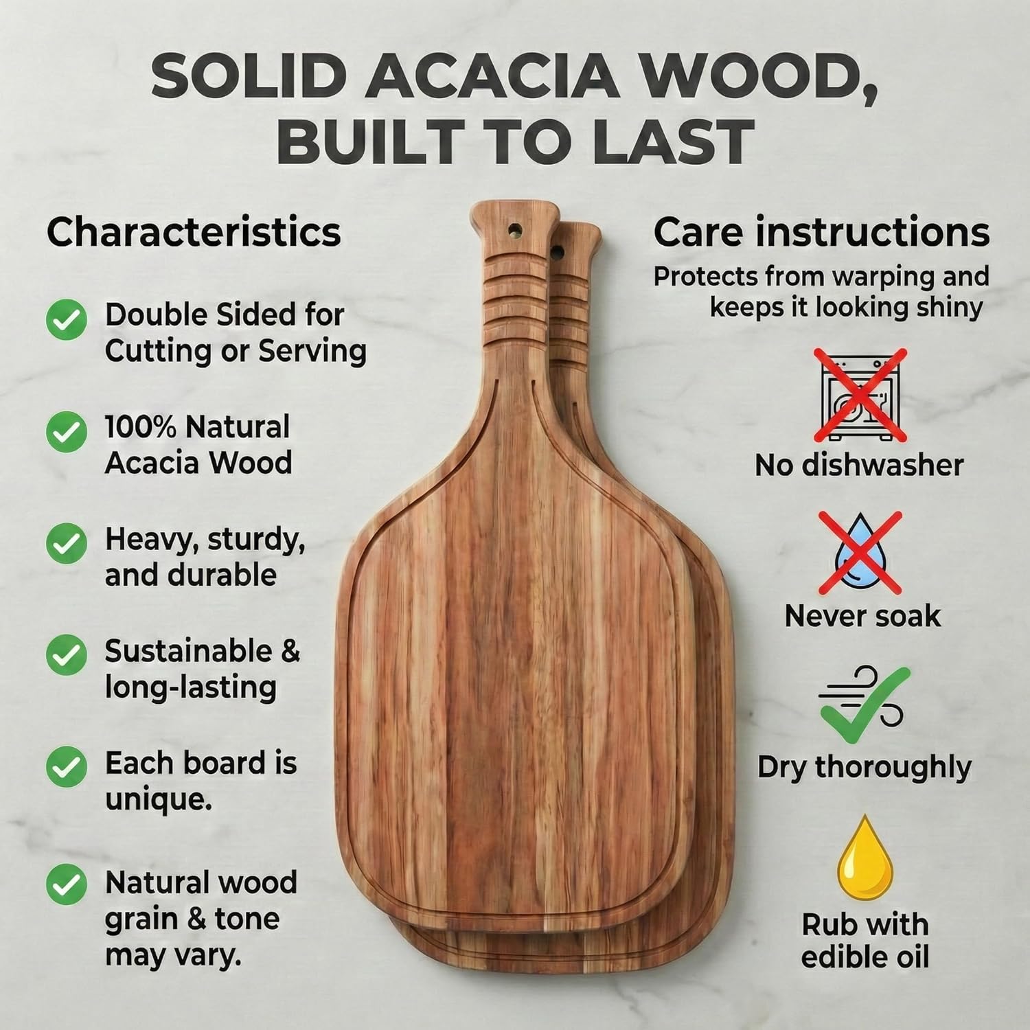 Double the fun with this set of 2 pickleball charcuterie boards. Each paddle-shaped cutting board is made from premium acacia wood and includes a juice groove and grip engraving. Whether you're serving cheeses and meats or fruit and desserts, this duo is perfect for elevating your next pickleball party or themed gathering. These boards pair perfectly with pickleball plates, pickleball coasters, and other pickleball decor. They’re ideal for snacks, crackers, pickleball pasta, or just your post-match treats. A great solution for players looking to host or gift in style. Looking for the best gifts for pickleball players? This set is great for team events, retirements, or as a standout pickleball mothers day gift or pickleball fathers day gift. Also ideal for pickleball gifts for mom, pickleball accessories for women, or unique customized pickleball gifts. Display alongside other fan-favorites like a pickleball pillow, pickleball blanket, pickleball candle, or pickleball paddle flask. Perfect for the kitchen, game room, or as a centerpiece on your snack table. Whether you’re gifting it, using it for paddlesmash pickleball yard game gatherings, or simply want a premium pickleball charcuterie board to show off, this set delivers. With quality materials and thoughtful design, it's a stylish choice for any fan of the sport.