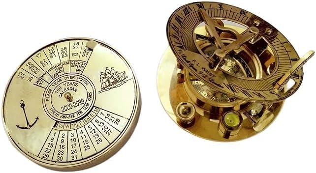 Set of 2 Shiny Finish Brass Sundial Compass and Brass Calendar Paperweight. Crafted from high-quality brass, these stunning pieces combine timeless design with practical