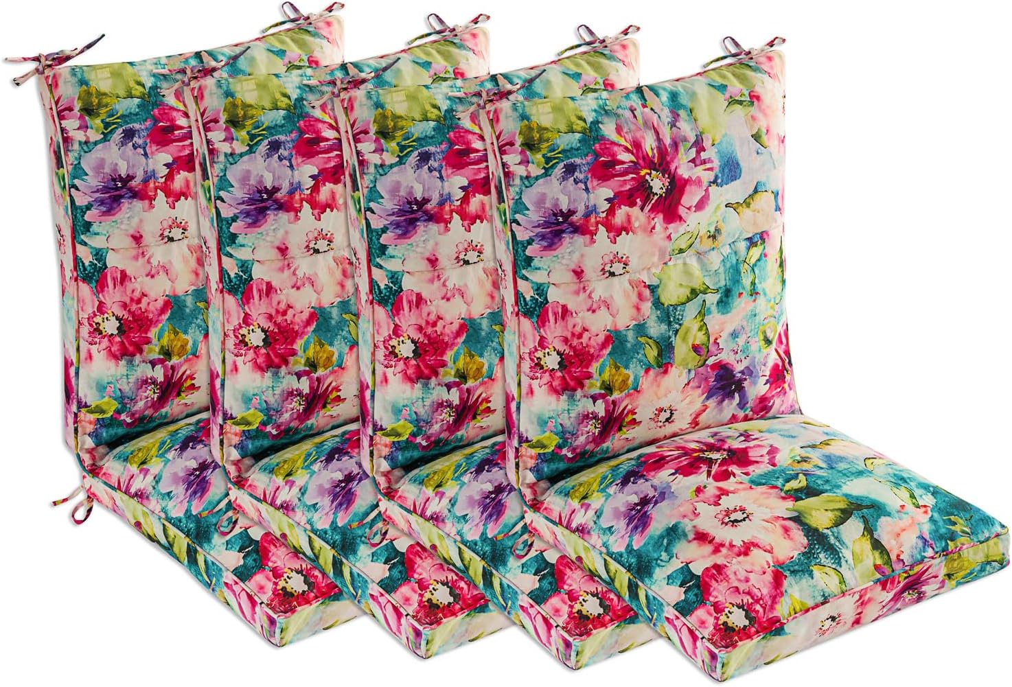 Set of 4 Outdoor Dining Chair Cushions, 44 x21x4.50 inch, High Back Comfort Patio Seating Cushions, Single Welt and Zipper, Blooming Fiesta