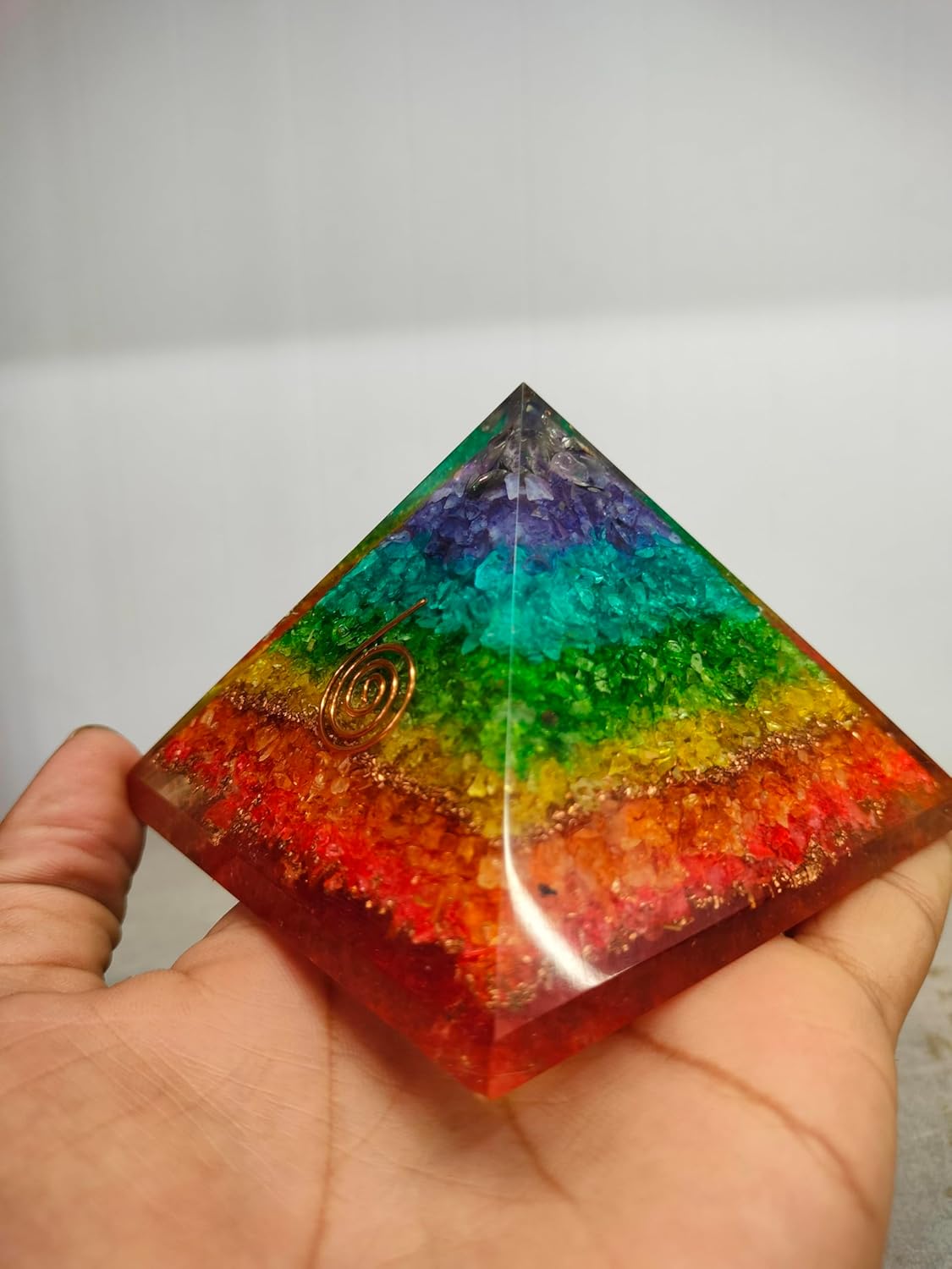 ๐ Seven Chakra Orgone Pyramid โ Balance Energy, Attract Prosperity & Success ๐ This handcrafted Seven Chakra Orgone Pyramid is designed to align chakras, attract wealth, and promote positive energy. Infused with natural healing crystals, copper, and orgone energy, it neutralizes negativity, shields against EMF radiation, and enhances spiritual and financial growth. ๐ฎ Key Features & Benefits: ๐ Seven Chakra Healing โ Contains Amethyst, Lapis Lazuli, Blue Aventurine, Green Aventurine, Yellow Jasper, Carnelian, and Red Jasper to balance and align chakras. โก Orgone Energy Generator โ Absorbs negative energy and amplifies positive vibrations, promoting emotional and spiritual healing.