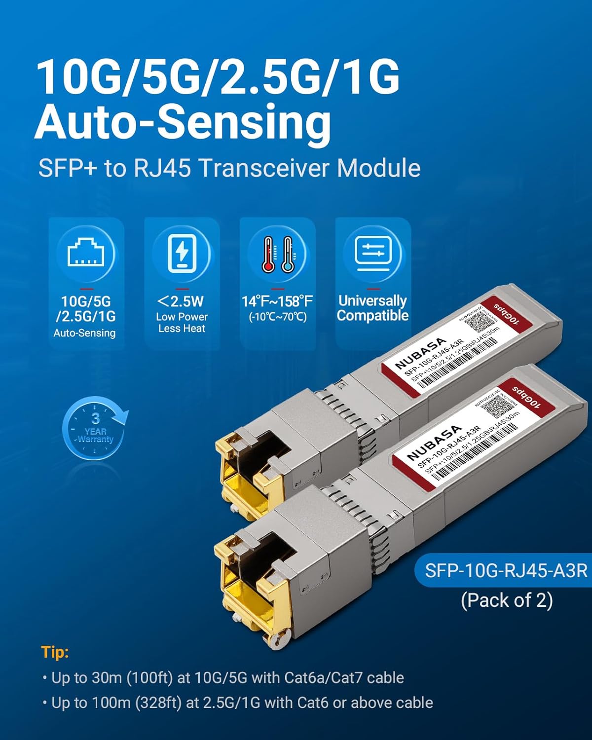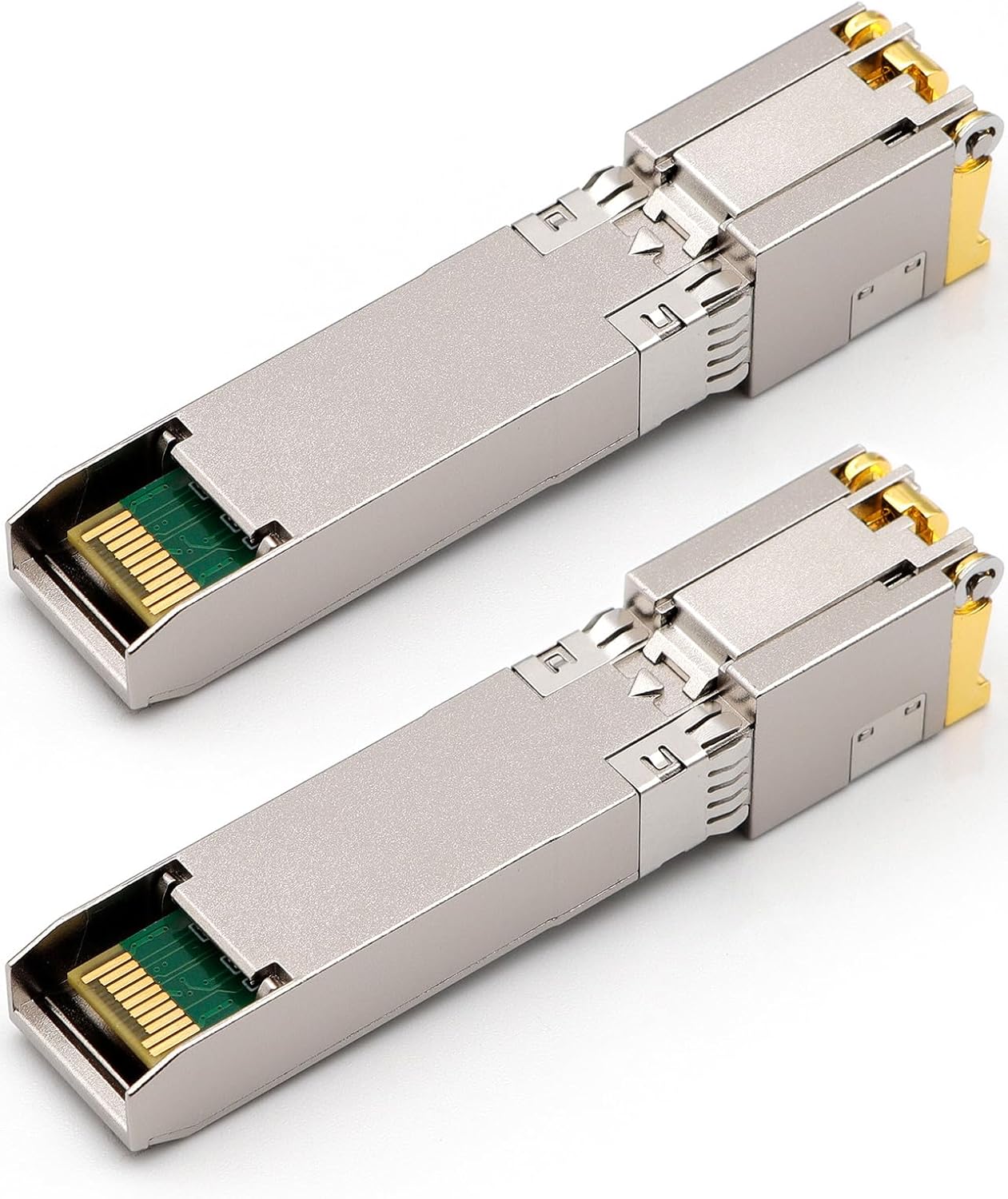 SFP+ to RJ45 Adapter | 10G/5G/2.5G/1G Auto-Sensing | Low Power < 2.5W | 10GbE Copper Transceiver Up to 100ft (30m) | Plug-Play for Ubiquiti/Cisco/Netgear Compatible (Pack of 2)