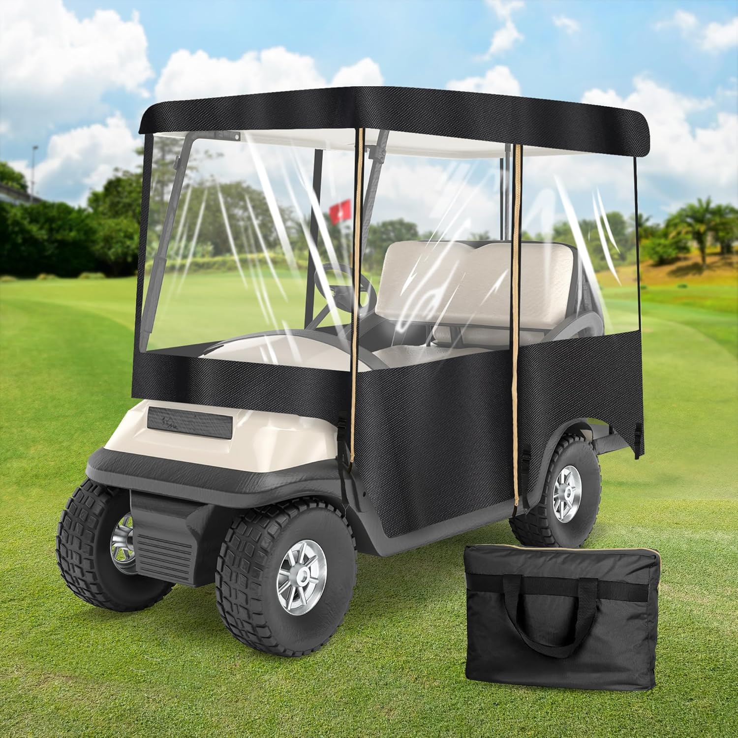 SHANTRA Golf Cart Enclosure, Golf Cart Cover for 2/4 passengers with 4-Sided Transparent Windows, Portable & Universal Rain Cover with Carrying Bag - Waterproof