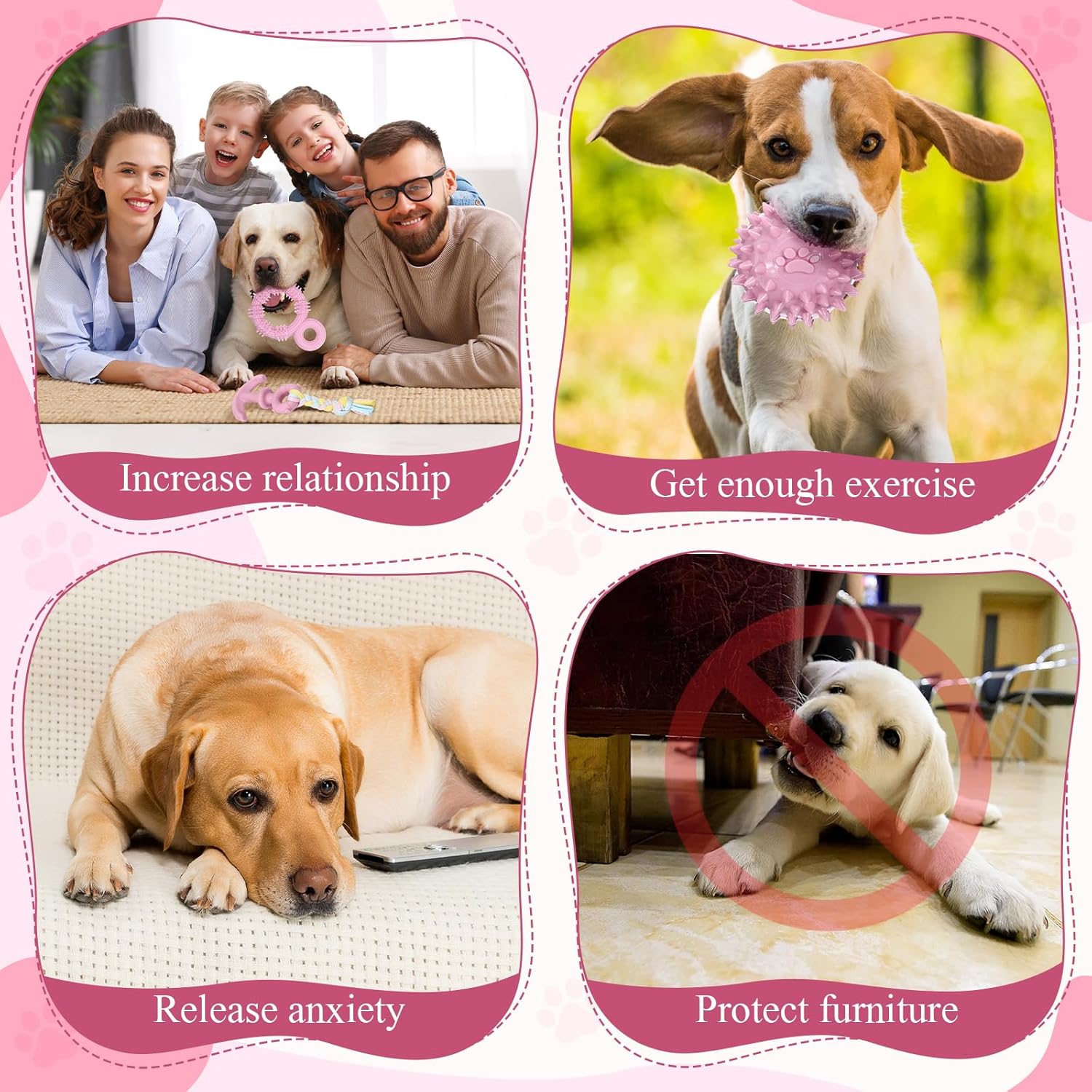 Features: Fresh pink design: Consistent with the bright and fresh pink theme, the colors are eye catching, even if it gets lost in a corner, it can be quickly located among multiple style combinations, easily meeting the different chewing preferences of puppies. Promote emotional communication between you and your pet: Suitable for indoor and outdoor interactive play, during the playtime, enhance the bond between you and your pet, taking into account both physical and mental health, making the companionship more meaningful. Specifications: Material: TPR Color: pink Size: as shown in the figure Package includes: 40 x Dog chew toys for puppy Notes: Manual measurement, please allow slight errors on size. The color may exist a slight difference due to different screen displays