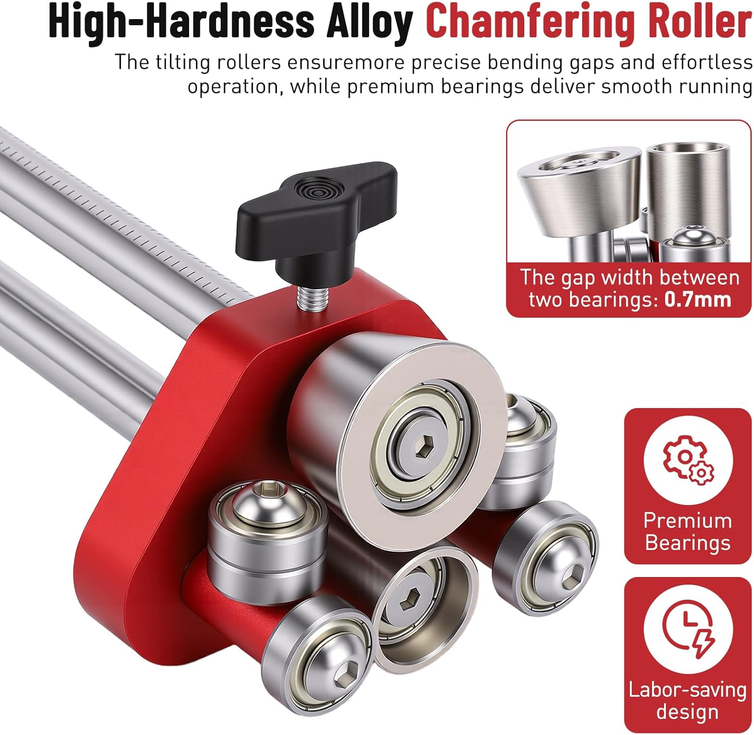 • PRECISE 0-100° BENDING RANGE: This single-axes sheet metal bender delivers accurate bends from 0 to 100 degrees, specifically designed for professional metalworking applications. Features a specialized oblique rolling wheel that prevents material scratching during 90-degree bends, ensuring clean, professional results every time.
