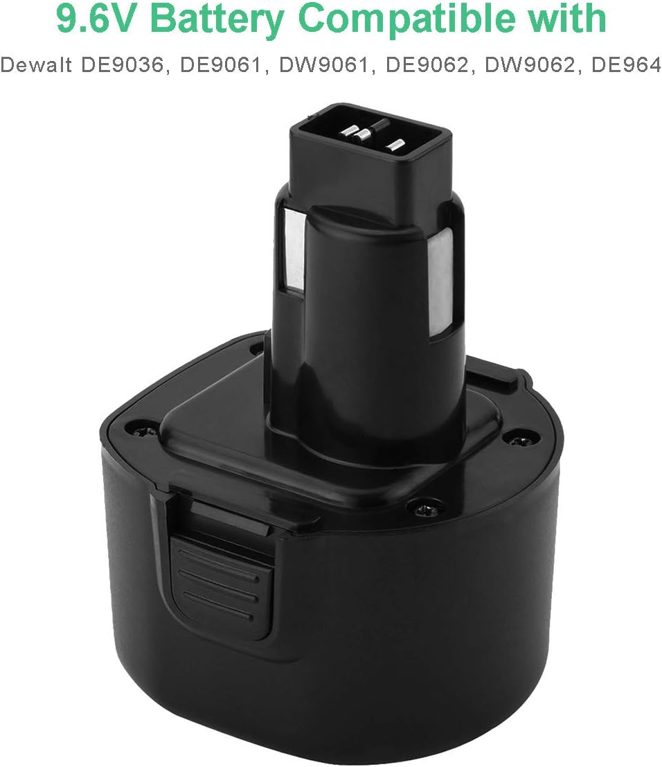 Advantage: Uses the highest quality Ni-MH cells, More safety than the Ni-Cd battery. Overcharge and overdischarge protection to increase the life of the battery. No memory effect, can be charged or discharged as needed without loss of capacity. Low self-discharge for maximum productivity and less downtime. CE, FCC and RoHS certified, 100% compatible with the originals. No pollution to the environment. Specifications: Voltage: 9.6V Capacity: 3000mAh Battery Type: Ni-MH Replacement Part: DE9036 DE9061 DE9062 DW9061 DW9062 Black & Decker PS120 Compatible with: : DC750KA, DC855KA, DW050, DW050K, DW902, DW926K, DW926K-2, DW952, DW955, DW955K, DW955K-2 Note: It's recommended that the battery should be fully charged and discharged 3 times after you receive the battery. For transport safety, our batteries are not fully charged before leave the factory. After use, please charge the battery after cooling. Battery charger is not included. Package Include: 1 * 9.6V Ni-MH battery+1 Charger Anytime from the date of purchase, we will try our best to provide you the best service.