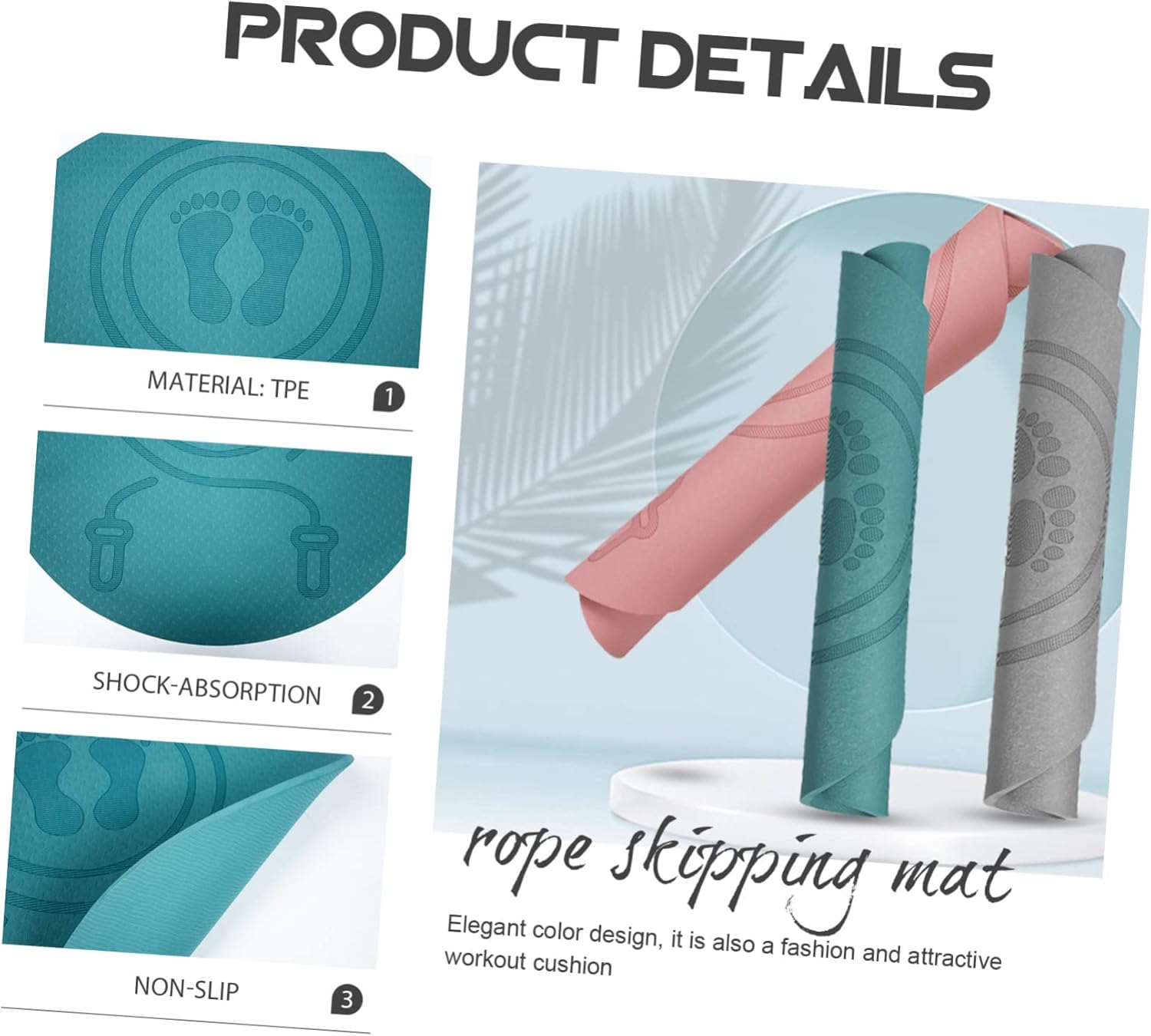 Package List 1 x jump rope mat Features -Material: TPE outdoor climbing mat. -High elasticity, comfortable foot protection, you will feel very comfortable when you use it fitness equipment mat. -It is made of safe materials and are more comfortable and and tread multipurpose workout mat. -The mat provides maximum comfort and arch support for your daily jumping and sports use outdoor workout mat. -The workmanship of this product is , and you will have a experience in using it shock-absorbing mat. -Comfortable, shockproof and non-slip, suitable for sports and rope jumping gymnastics mats for .Goods Descriptiongymnastics mats for This jump rope mat is of non-slip, use effect.padded exercise mats for home The color is modern and simple.exercise fitness mat Simple and useful material, no , relaxing to use.workout mats for home The whole pad is made of and and elastic TPE material, which can be no-mark after using, no matter how and deform the pad