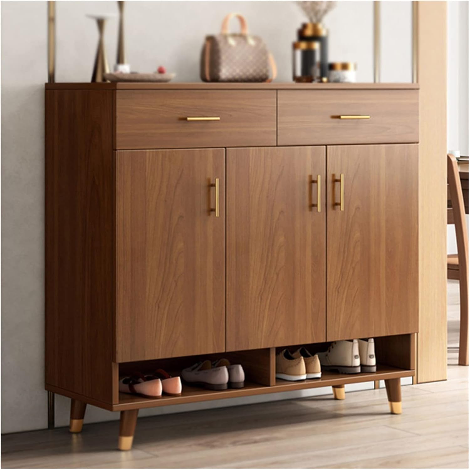 Solve the messy troubles and have a good mood to go out.Ingenuity creates an orderly arrangement of space to enjoy life.Partitioned structure, the cabinet accommodates shoes in four seasons, and the drawers store daily necessities in an orderly manner.The flexible adjustment of the movable shelf is more practical.Stable support without tipping.Type: Living Room FurnitureApplication: Home Office, Living Room, Office BuildingMaterial: woodsize60*32*100cm90*32*100cm120*32*100cmNote: Only the shoe cabinet, other items can only be used for shooting.This product contains only the shoe rack, and the rest of the items need to be photographed.There are also some errors due to differences between measurement and hand cutting methods.