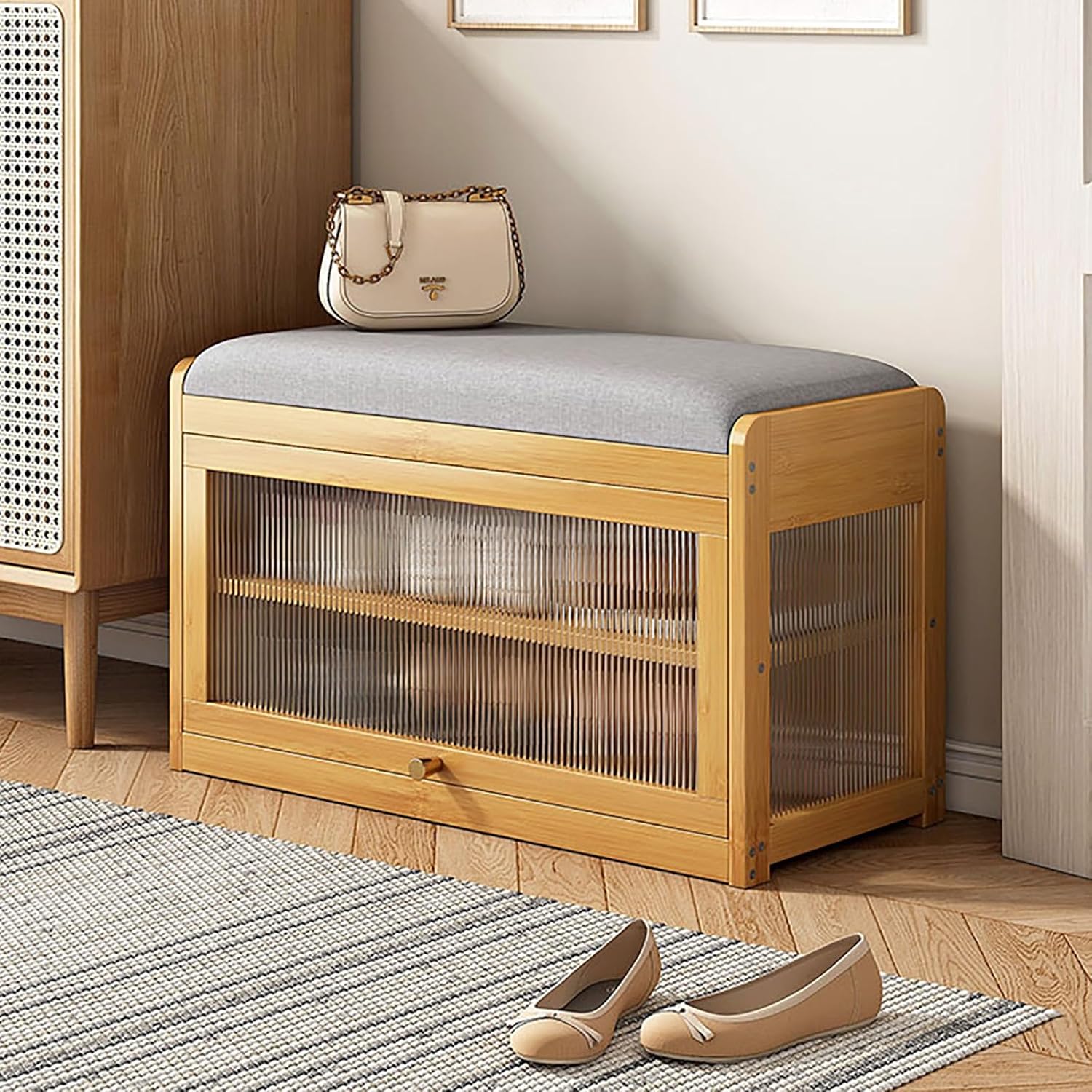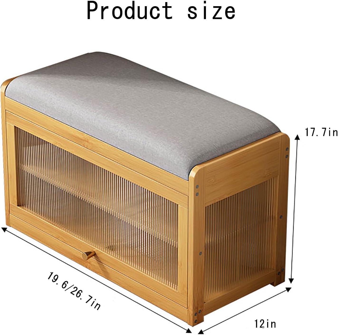 Product SpecificationsProduct Name: Shoe cabinet/Entryway Bench/Shoe RackProduct Color: Log Color, Black, BrownProduct Material: BambooCushion Material: Linen + SpongeProduct Size:19.6x12x17.7in26.7x12x17.7inScope of Use: Foyer, Living Room, Balcony, Bedroom, Shop, etc.Hint:1.Due to manual measurement, there may be an error of 1-3 cm.2.Due to various factors such as monitor brightness and light brightness, the actual color of the product may be slightly different from the picture shown on the website.3. Items other than the main products shown in the main picture are for demonstration purposes only and do not include other items.