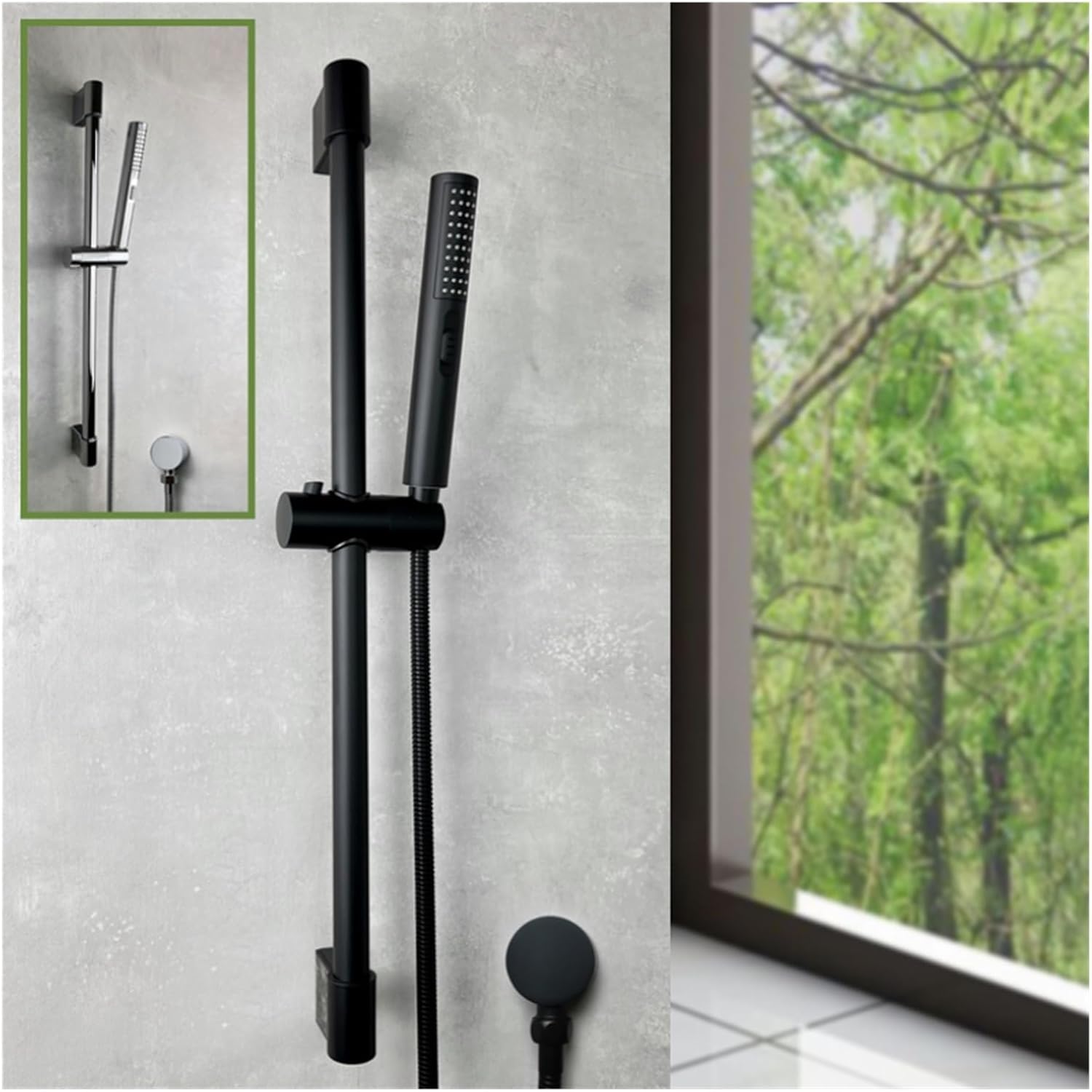 Bath & Shower Grab BarsShower Sliding Bar SetMaterial: Stainless Steel Bar+ABS Plastic HAND SHOWER+ ABS Plastic HOLDER+ 304 STAINLESS STEEL HOSE+Solid Brass Outlet Color: Chrome/Matt BlackInclude All Fixing Screw