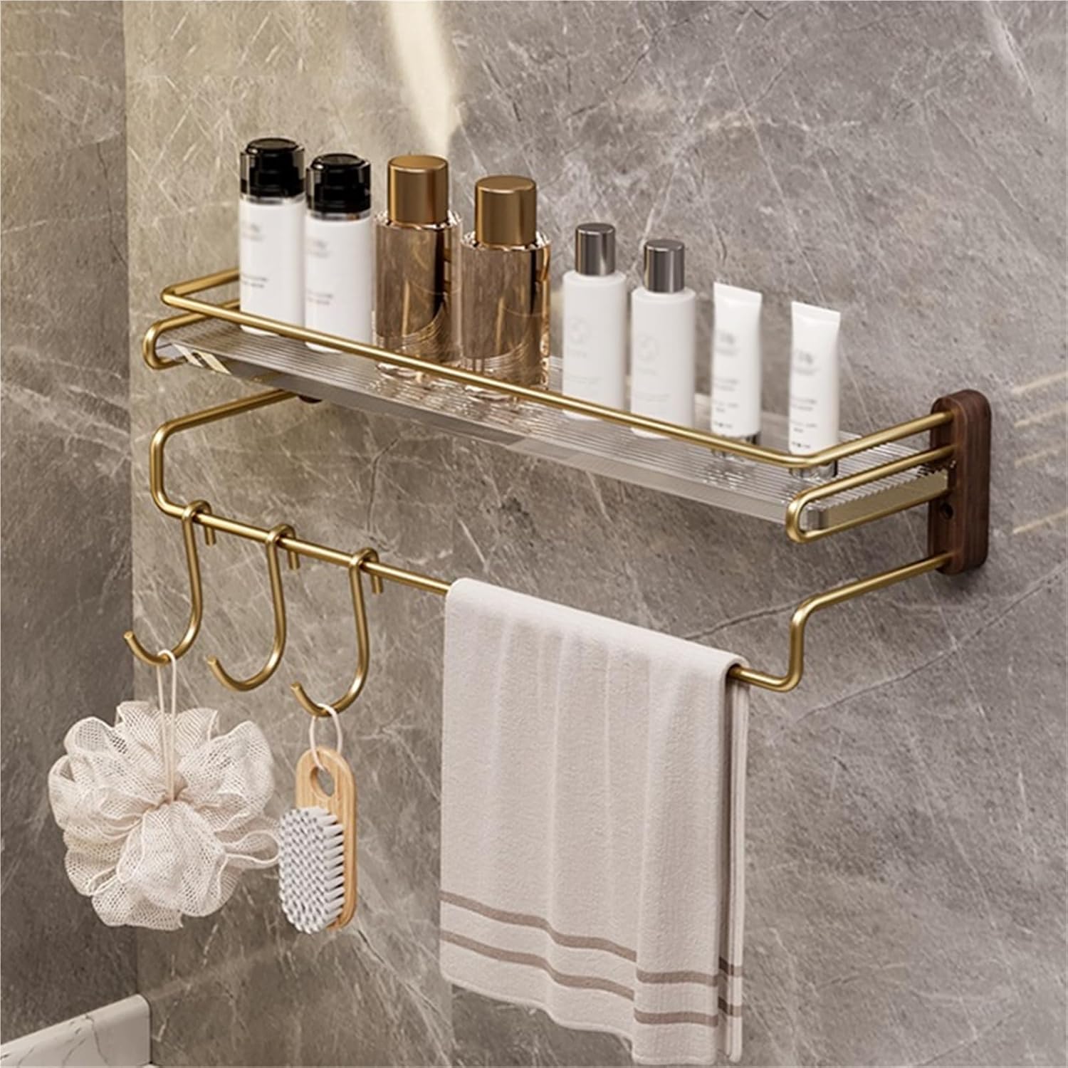 Shower Caddy Shelves Organizer Bathroom Rack Storage Shelf for Inside Shower Bathroom Wall OrganizationName: Acrylic rackMaterial: black walnut, stainless steelInstallation: nail-free installation/drilling installation (simple models can only be installed without nails)Package Contents:1 x Bathroom ShelfOnly the above package content, other products are not included.Note:Light shooting and different displays may cause the color of the item in the picture a little different from the real thing.The measurement allowed error is +/- 1-3cm.