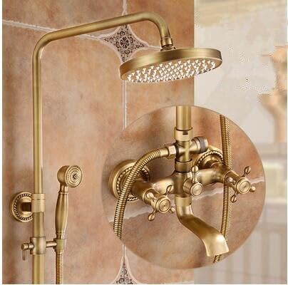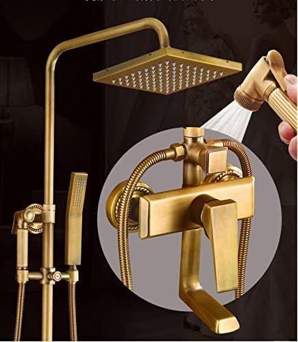 Shower Faucet Set Antique Bronze Wall Mounted Shower Suit Brass Water Mixer Support Rainfall Head(Bronze)