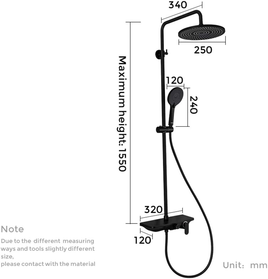 Shower Installation KitsStyle: ContemporaryMaterial: Brass Valve Core Material: CeramicFeature: Cold and HotNumber of Handles: Single HandleCold/Hot Water Control Type: Single Holder Dual ControlColor: BlackWarm Reminder: Check that all accessories are complete before installation. Manual measurement of various sizes has a certain error. Please refer to the actual product! The project may be slightly different from the picture due to the display of lights and displays.The rain shower head is both superior in design and durability.