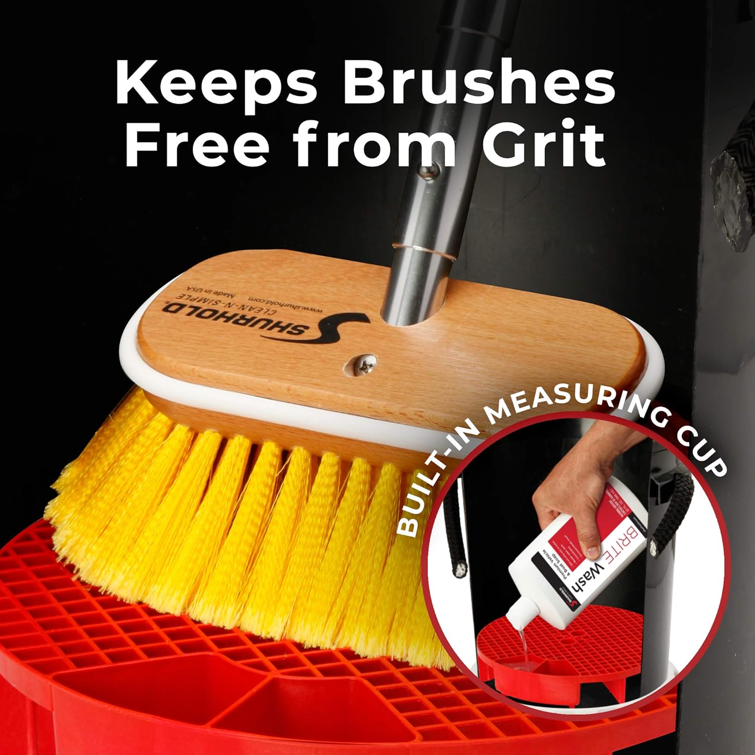 The Shurhold One Bucket Kit transforms a standard 5‑gallon bucket into a complete, all-in-one cleaning and storage system for boats, RVs, cars, or household use. The black bucket is made of heavy-duty, UV-resistant plastic, designed for durability and longevity. With integrated organizational features, it keeps your cleaning tools and supplies accessible, elevated, and dry while you work.